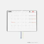 | 記載される内容 | 日番号/週番号(月間カレンダーに記載)/月の満ち欠け(1日ページ全ページに記載、月間カレンダーに満月と新月のみ記載) |