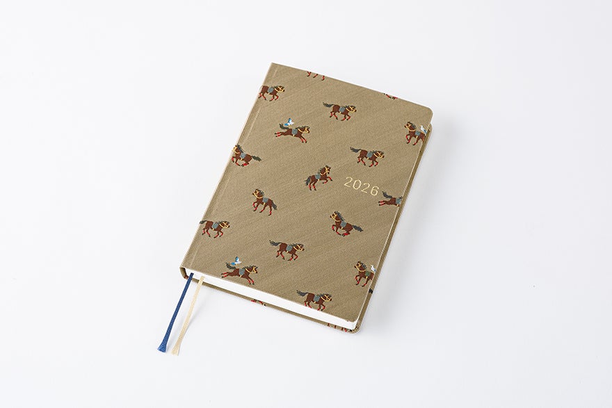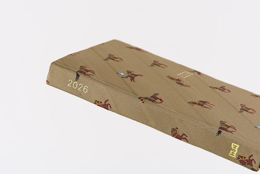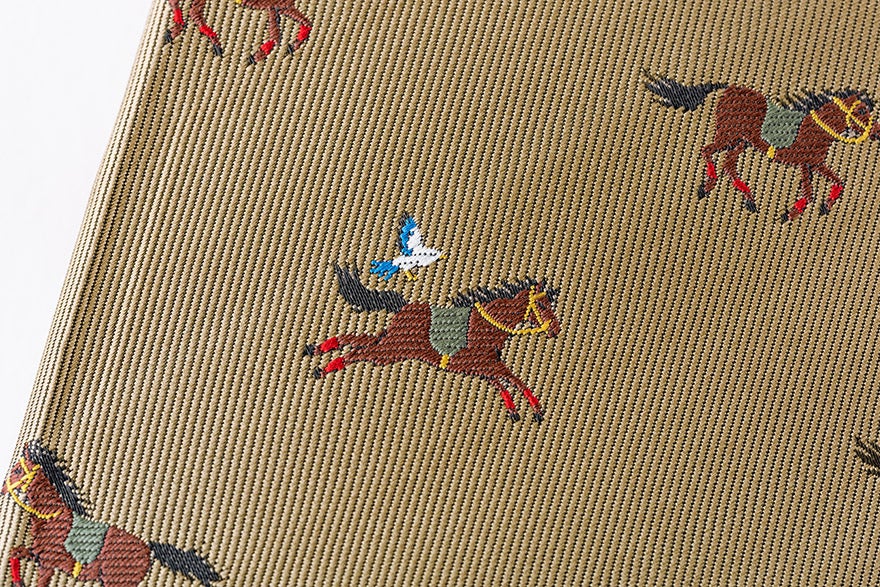 「駆ける馬」の柄では、シックなベージュの表紙に