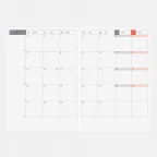 | 記載される内容 | 日番号/週番号(月間カレンダーに記載)/月の満ち欠け(1日ページ全ページに記載、月間カレンダーに満月と新月のみ記載) |