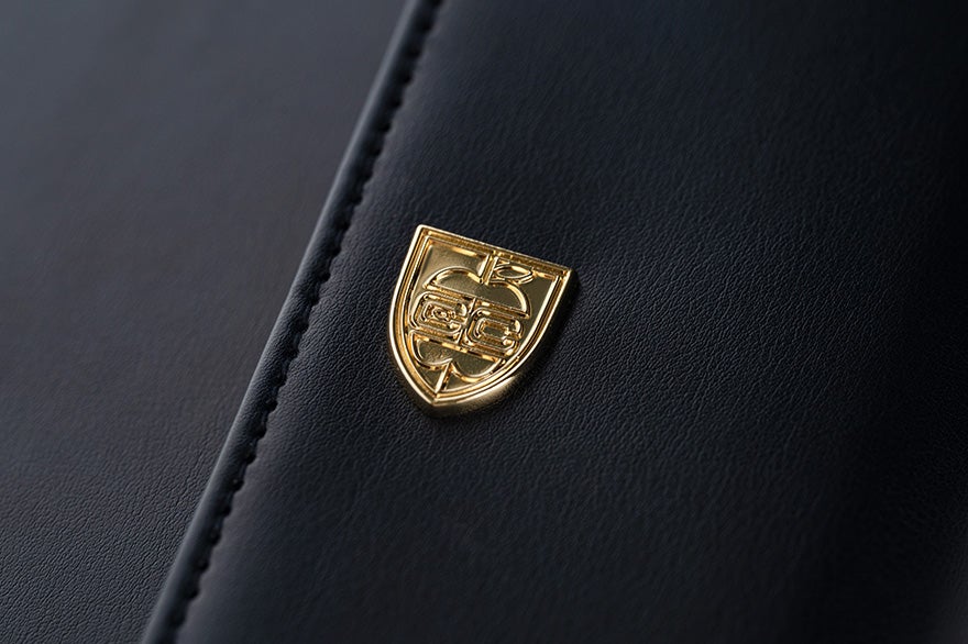 金の校章が輝きます。