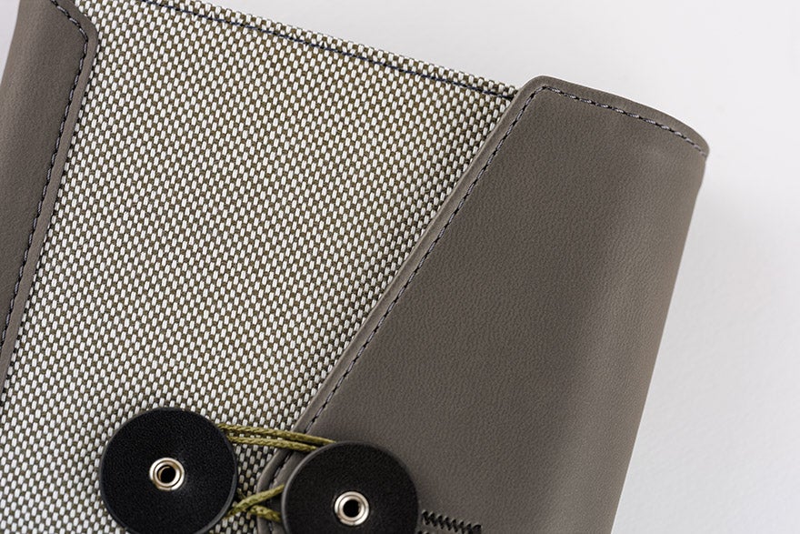 深みのあるスモーキーグレーのポリウレタン素材と、