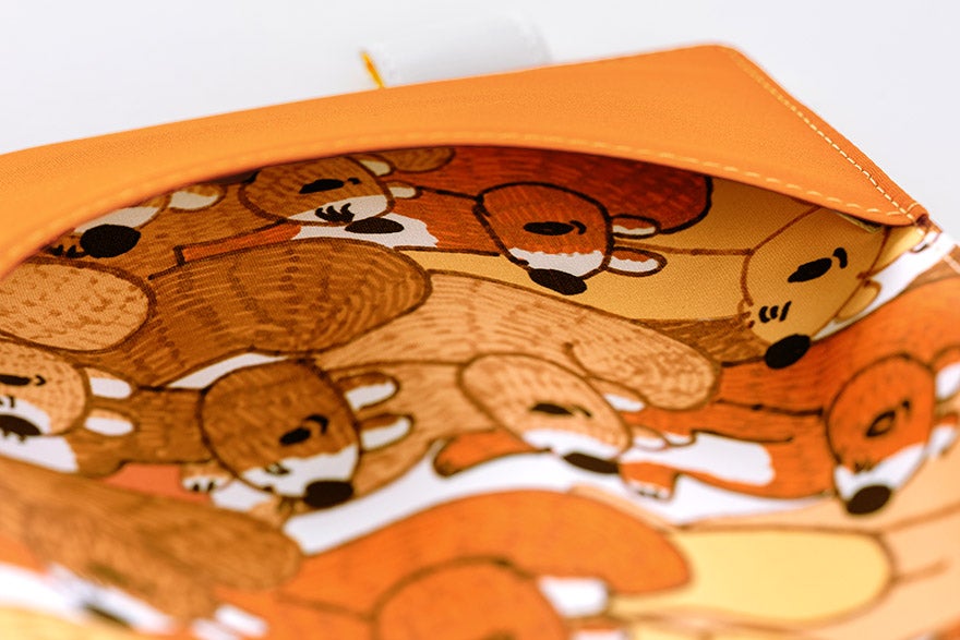 カバーのカラーやプリント柄は、白い生地に染色や印刷をしてつくられています。色合い、プリントの柄などはできるかぎり均一になるように確認しながら制作しておりますが、個体ごと、またはポケットなどのパーツごとに若干の色合いの違いや、プリントのにじみ、色ムラが出ることがあります。また、まれに黒や白の小さな点が見られることがあります。製造工程上避けられないものですのであらかじめご了承ください。