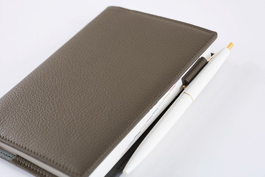 手帳本体にぴったりとフィットするスマートな革カバー。