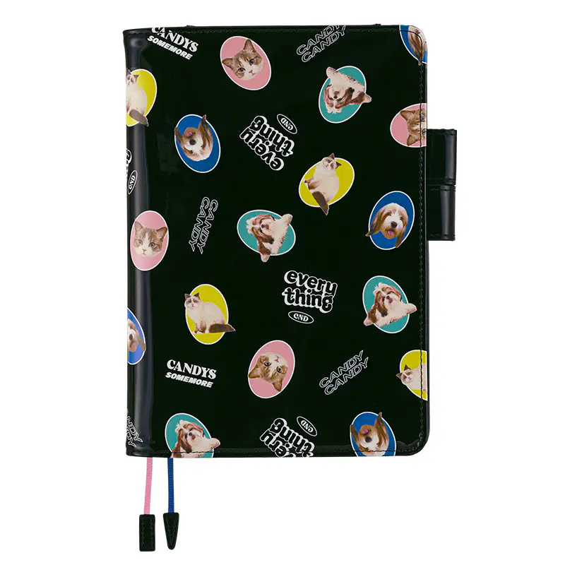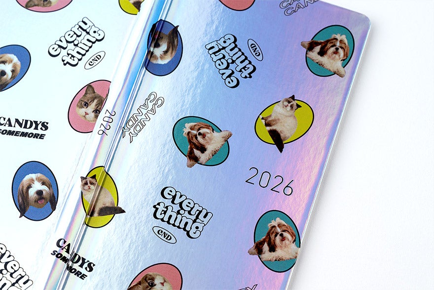 犬と猫の写真をちりばめたレトロポップな雰囲気のweeks。