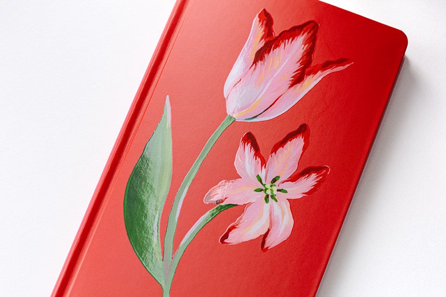 マットな質感の表紙に、花の絵をグロスシルク印刷。