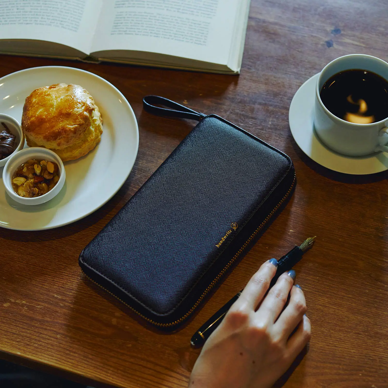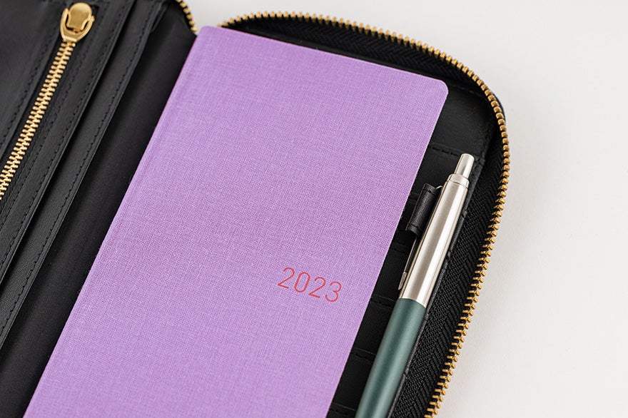 このカバーのペンフックは、ペンのクリップ部分を差し込んで使用するものです。ペンのサイズや形状によっては、ジッパーを開閉しづらくなることがあります。