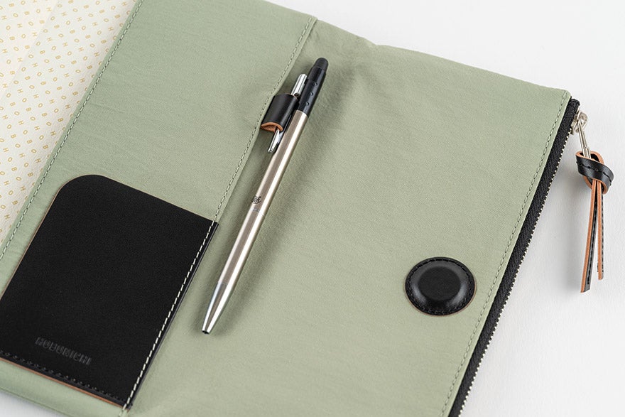 このカバーのペンフックはペンのクリップ部分を差し込んで使うタイプです