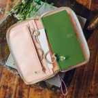 内側にもおなじペールピンクの革を使い、