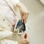 ちょっと近所へ出かけるときのミニショルダーとして。買い物などで帰りに荷物が増えそうなら、小さくたたんだエコバッグを入れておくと◎。