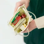 ちょっと近所へ出かけるときのミニショルダーとして。買い物などで帰りに荷物が増えそうなら、小さくたたんだエコバッグを入れておくと◎。