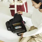 | サイズ | 縦410mm×横310mm×厚さ160mm 前ポケット:縦170mm×横220mm×厚さ50mm 脇ポケット:深さ230mm たたんだ時:縦240mm×横160mm |