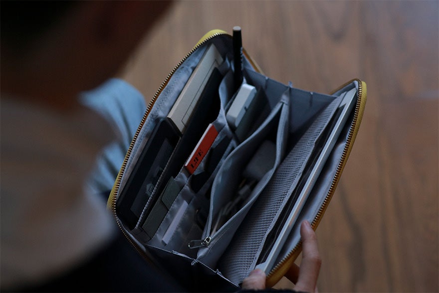 ポーチは収納物を衝撃から保護することを保証するものではありません。特にスマートフォン等の電子機器にご注意ください。