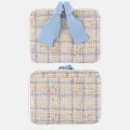 ホワイトの地をベースに、ライトブルー、イエロー、