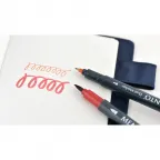 | 主な素材 | ペン先(太):ナイロン ペン先(細):ポリアセタール 中綿:ポリエステル、ポリプロピレン 軸、 キャップ:ポリプロピレン インク:水性染料インク |