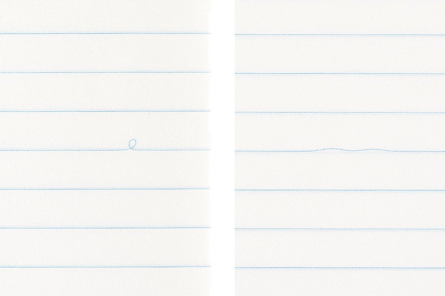 あらかじめ目立たない場所で試し書きいただくか、下敷き、吸い取り紙のご使用をおすすめいたします。