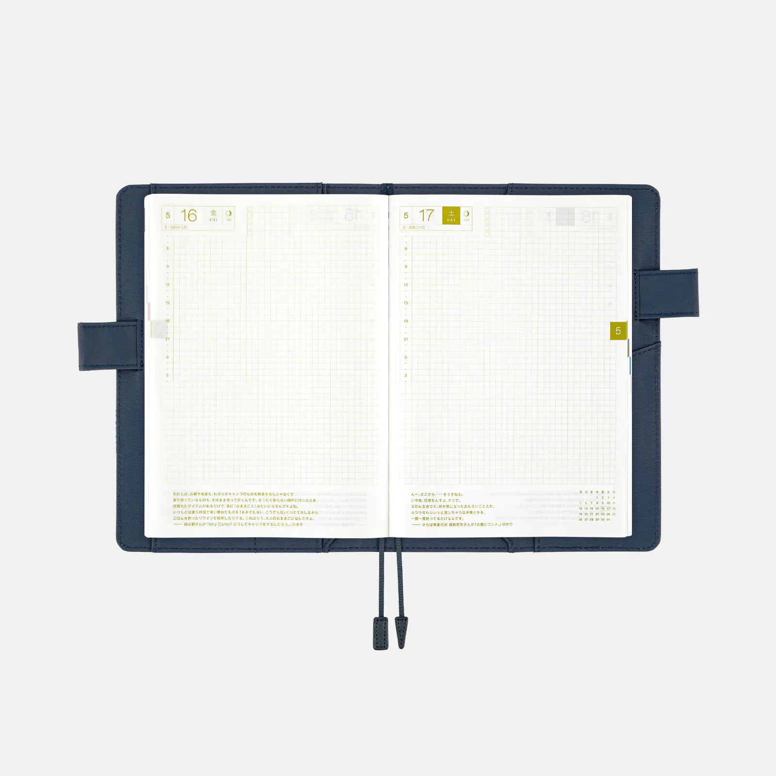 | 記載される内容 | 日番号/週番号(月間カレンダー・週間ダイアリーに記載)/月の満ち欠け(1日ページ全ページに記載、月間カレンダー・週間ダイアリーに満月と新月のみ記載) |