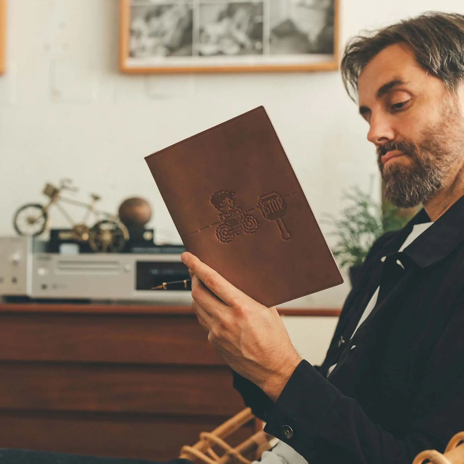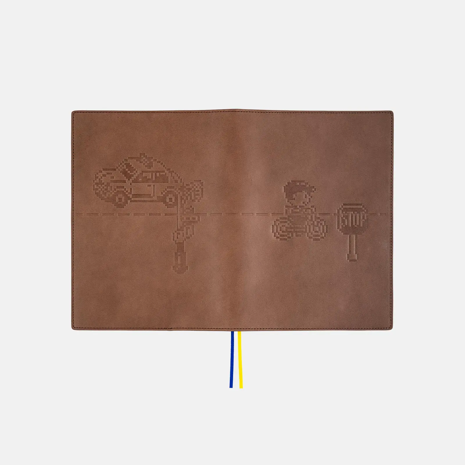 レザーの表面に型押しで表現したカバー。