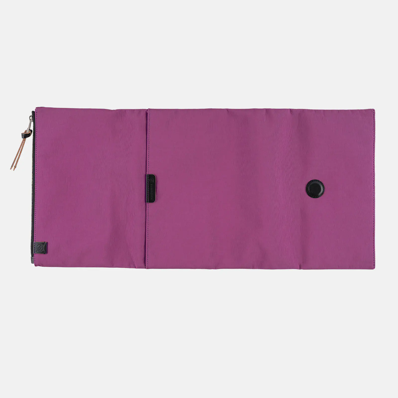 表のポケットには、レザーの引き手がついています。