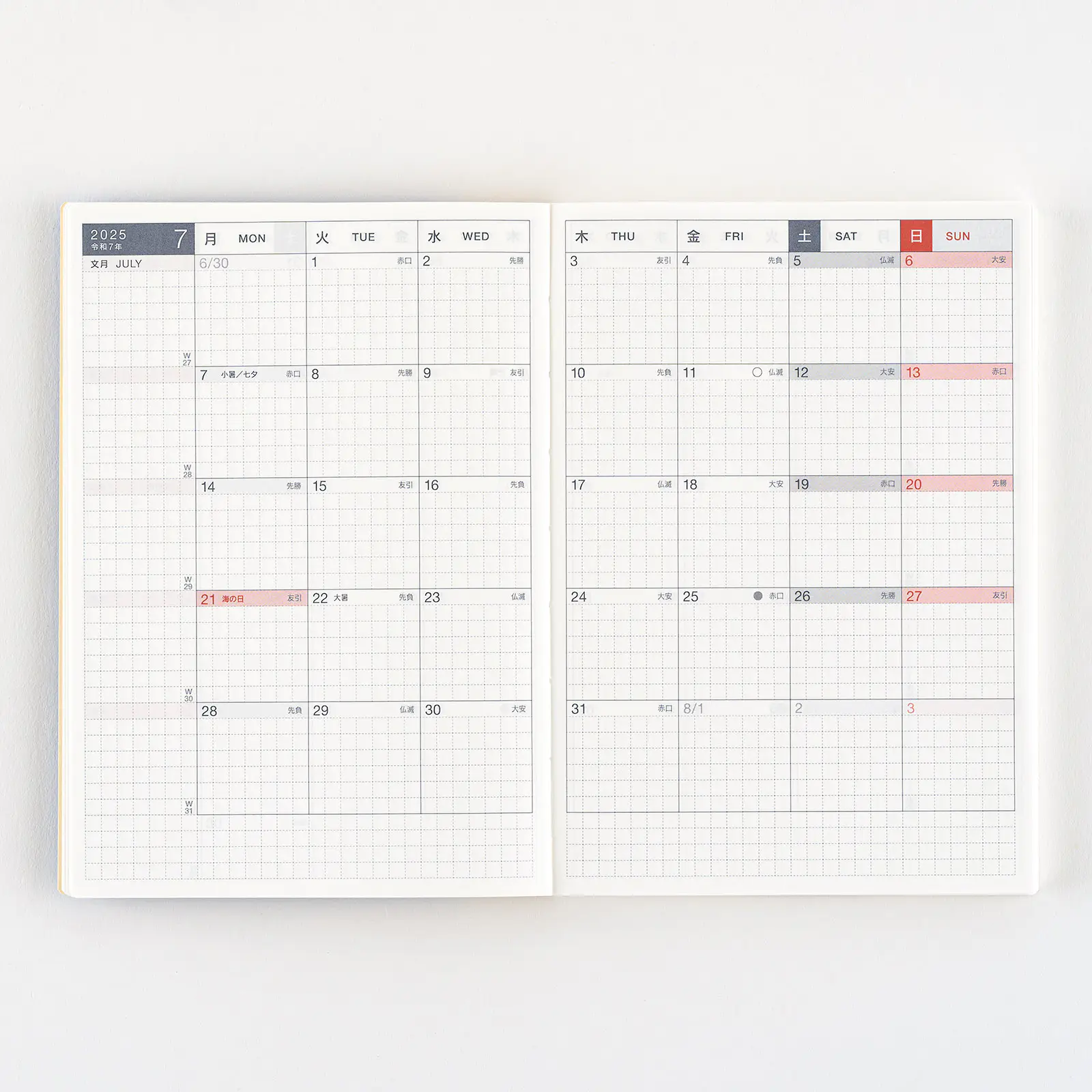 | 紙質・製本 | 薄くて軽く、裏抜けの少ないトモエリバー(手帳専用紙)/糸かがり製本 |