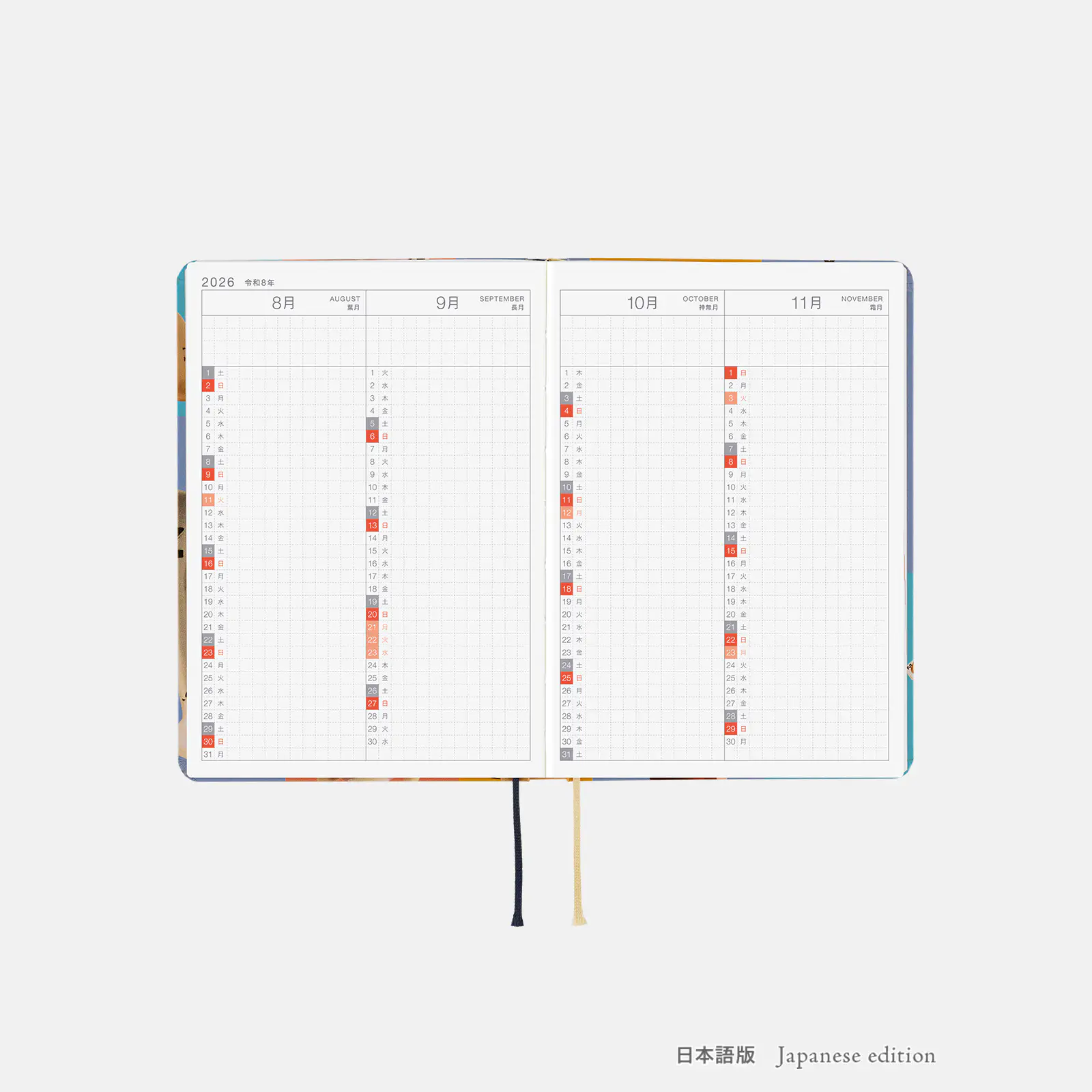 | 紙質・製本 | 薄くて軽く、なめらかな書き心地のトモエリバー(手帳専用紙)/糸かがり製本 |