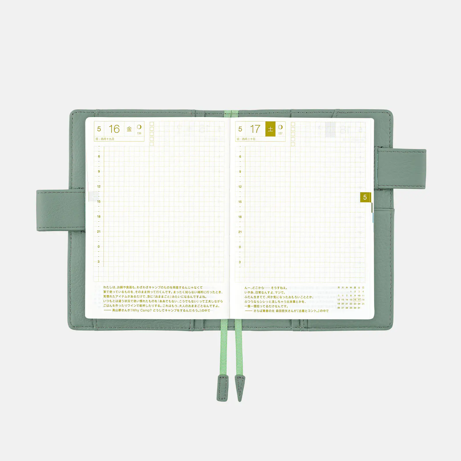 | 1日ページ | 前期 : 2026年1月1日〜6月30日(全187ページ) 後期 : 2026年7月1日〜12月31日(全190ページ) *各月のはじめに、「ことしの歳時記」と、その月のことをまとめて書ける扉ページ(1ページ)があります。 *すべてのページに「日々の言葉」を掲載。 *右ページに「ミニカレンダー」を掲載(月曜はじまり)。 *このほか、1日ページのはじめに、自由に使える「Turning the page to a new year」(前期:2ページ、後期:3ページ)があります。 |