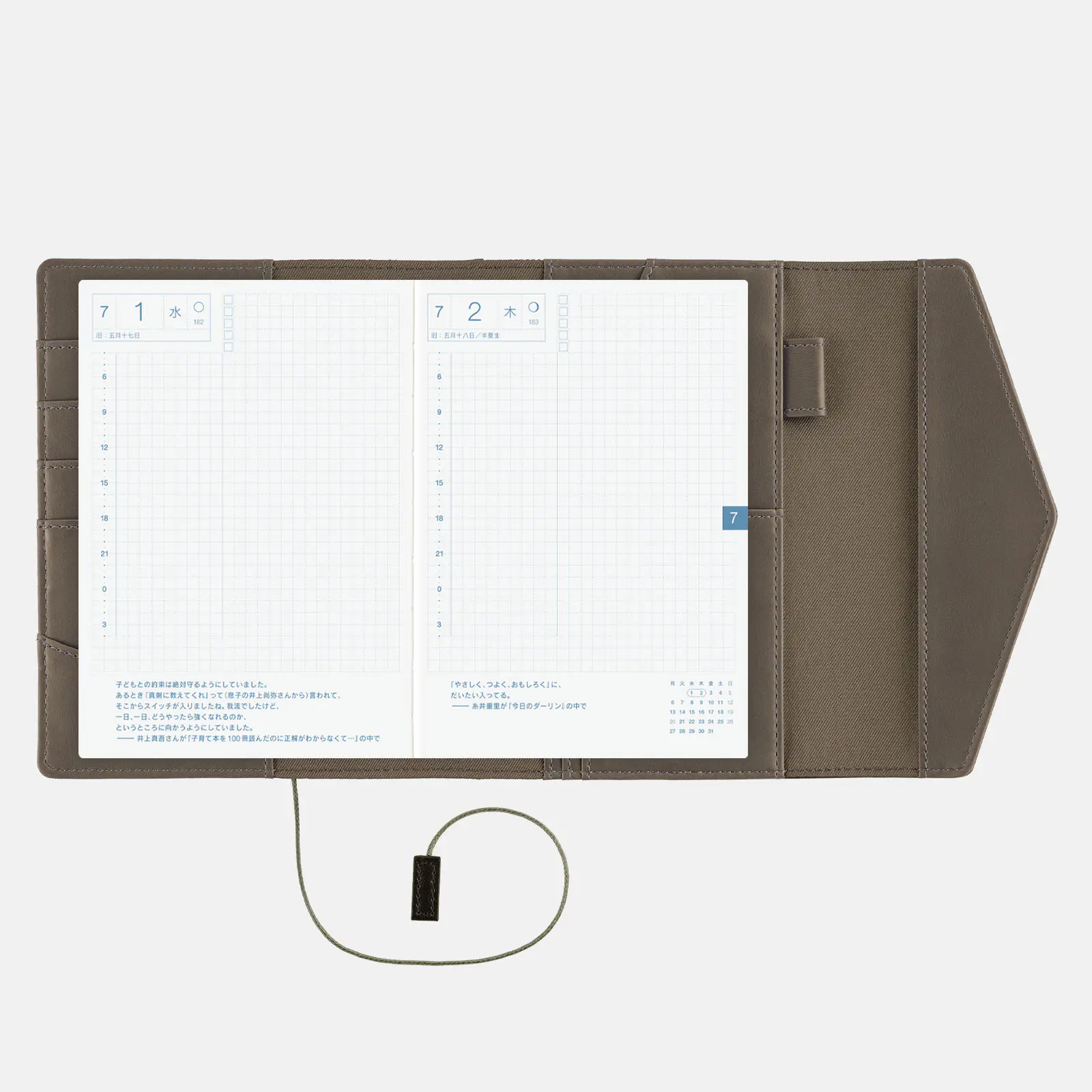| 1日ページ | 前期 : 2026年1月1日〜6月30日(全187ページ) 後期 : 2026年7月1日〜12月31日(全190ページ) *各月のはじめに、「ことしの歳時記」と、その月のことをまとめて書ける扉ページ(1ページ)があります。 *すべてのページに「日々の言葉」を掲載。 *右ページに「ミニカレンダー」を掲載(月曜はじまり)。 *このほか、1日ページのはじめに、自由に使える「Turning the page to a new year」(前期:2ページ、後期:3ページ)があります。 |