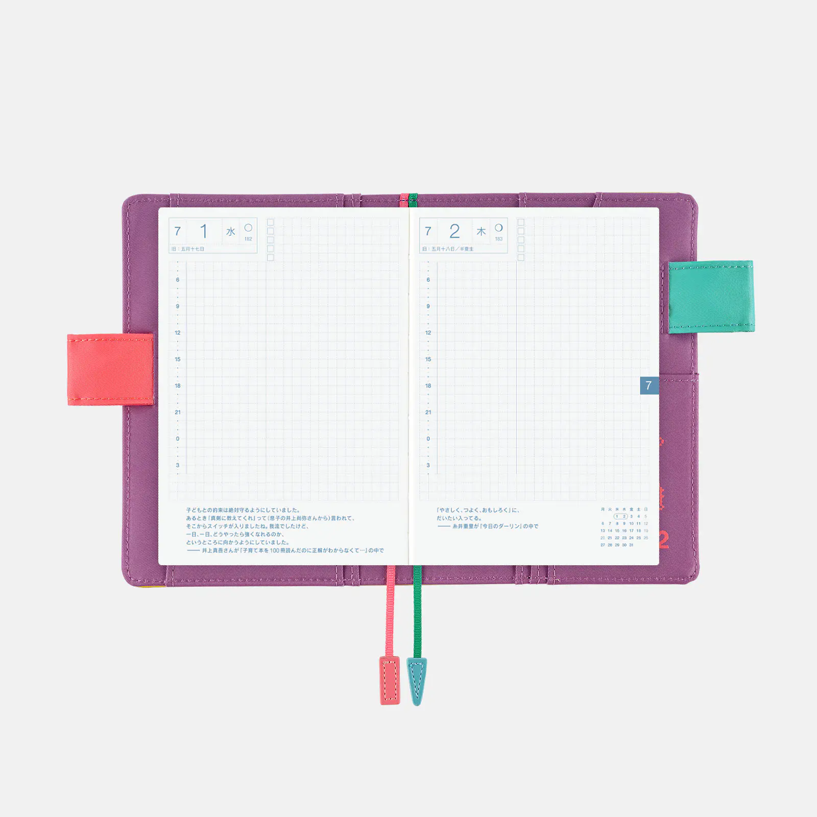 | 1日ページ | 前期 : 2026年1月1日〜6月30日(全187ページ) 後期 : 2026年7月1日〜12月31日(全190ページ) *各月のはじめに、「ことしの歳時記」と、その月のことをまとめて書ける扉ページ(1ページ)があります。 *すべてのページに「日々の言葉」を掲載。 *右ページに「ミニカレンダー」を掲載(月曜はじまり)。 *このほか、1日ページのはじめに、自由に使える「Turning the page to a new year」(前期:2ページ、後期:3ページ)があります。 |