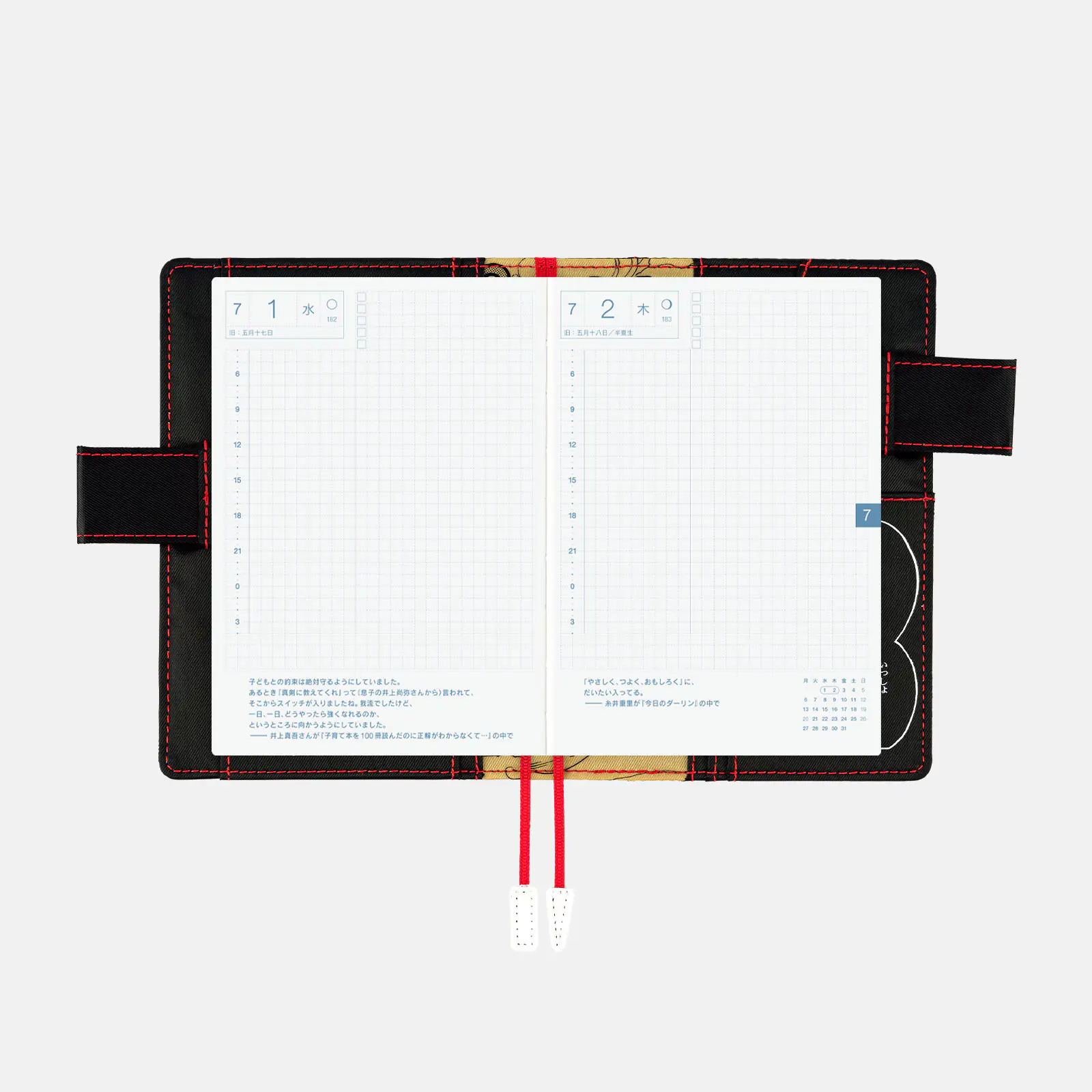 | 1日ページ | 前期 : 2026年1月1日〜6月30日(全187ページ) 後期 : 2026年7月1日〜12月31日(全190ページ) *各月のはじめに、「ことしの歳時記」と、その月のことをまとめて書ける扉ページ(1ページ)があります。 *すべてのページに「日々の言葉」を掲載。 *右ページに「ミニカレンダー」を掲載(月曜はじまり)。 *このほか、1日ページのはじめに、自由に使える「Turning the page to a new year」(前期:2ページ、後期:3ページ)があります。 |