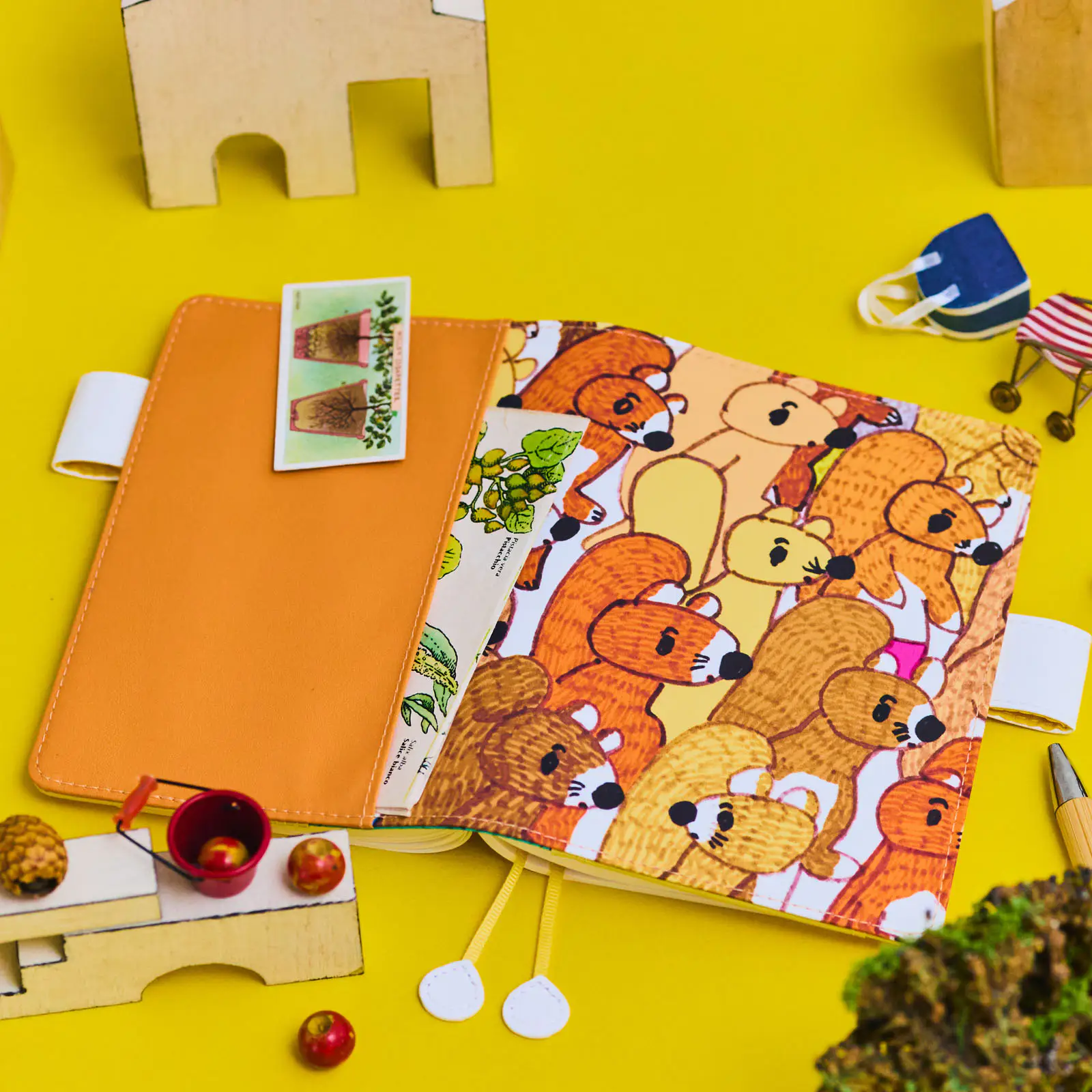 カバー内側は元気がわいてくる黄色で、りすたちが