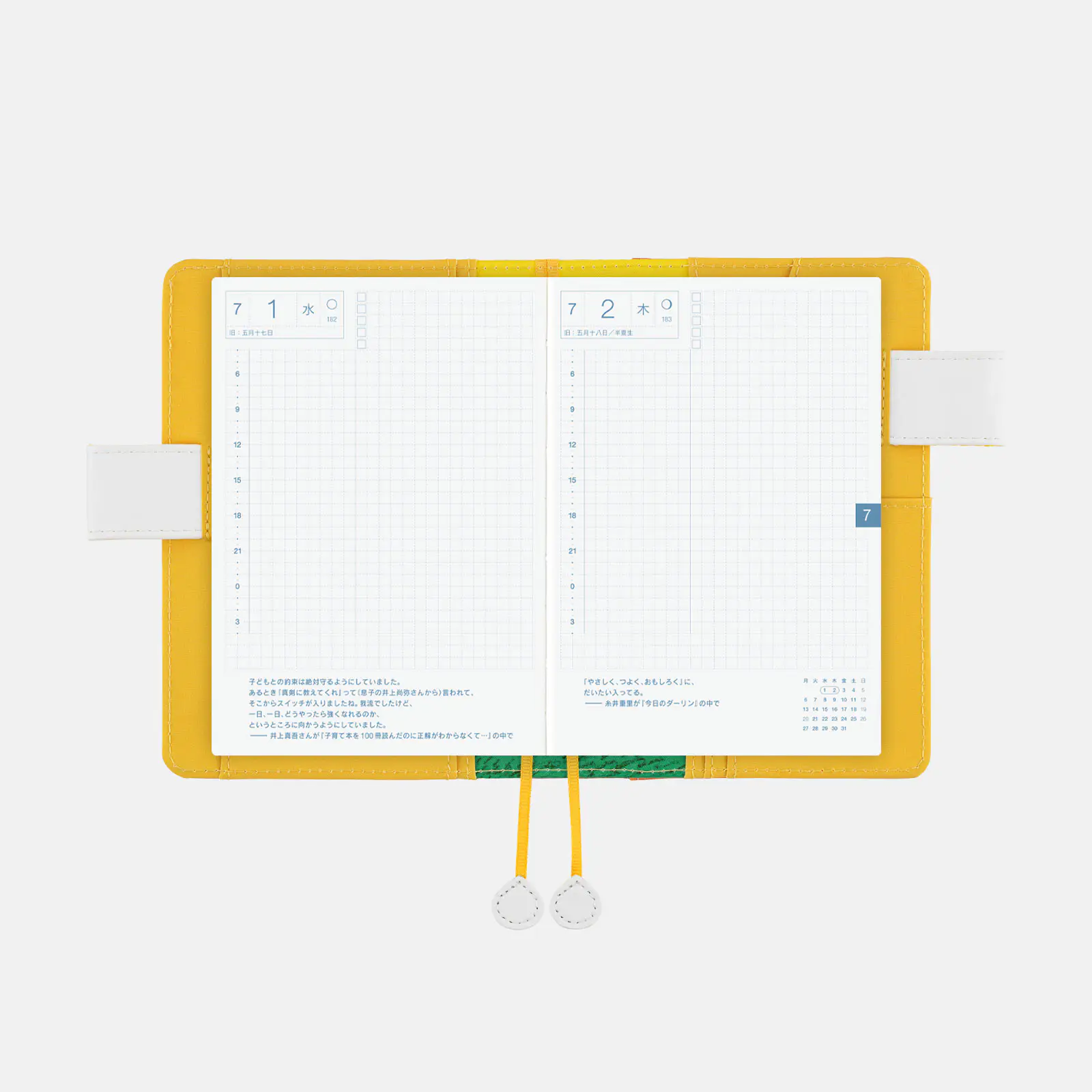 | 1日ページ | 前期 : 2026年1月1日〜6月30日(全187ページ) 後期 : 2026年7月1日〜12月31日(全190ページ) *各月のはじめに、「ことしの歳時記」と、その月のことをまとめて書ける扉ページ(1ページ)があります。 *すべてのページに「日々の言葉」を掲載。 *右ページに「ミニカレンダー」を掲載(月曜はじまり)。 *このほか、1日ページのはじめに、自由に使える「Turning the page to a new year」(前期:2ページ、後期:3ページ)があります。 |