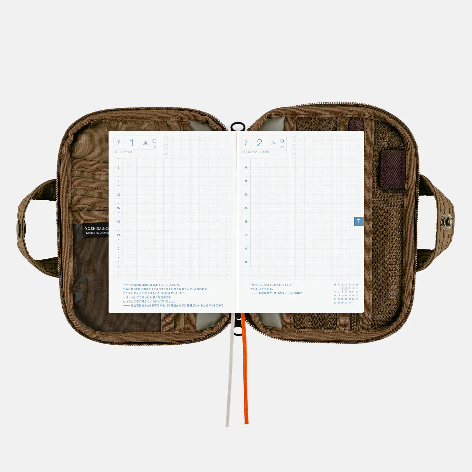 | 1日ページ | 前期 : 2026年1月1日〜6月30日(全187ページ) 後期 : 2026年7月1日〜12月31日(全190ページ) *各月のはじめに、「ことしの歳時記」と、その月のことをまとめて書ける扉ページ(1ページ)があります。 *すべてのページに「日々の言葉」を掲載。 *右ページに「ミニカレンダー」を掲載(月曜はじまり)。 *このほか、1日ページのはじめに、自由に使える「Turning the page to a new year」(前期:2ページ、後期:3ページ)があります。 |