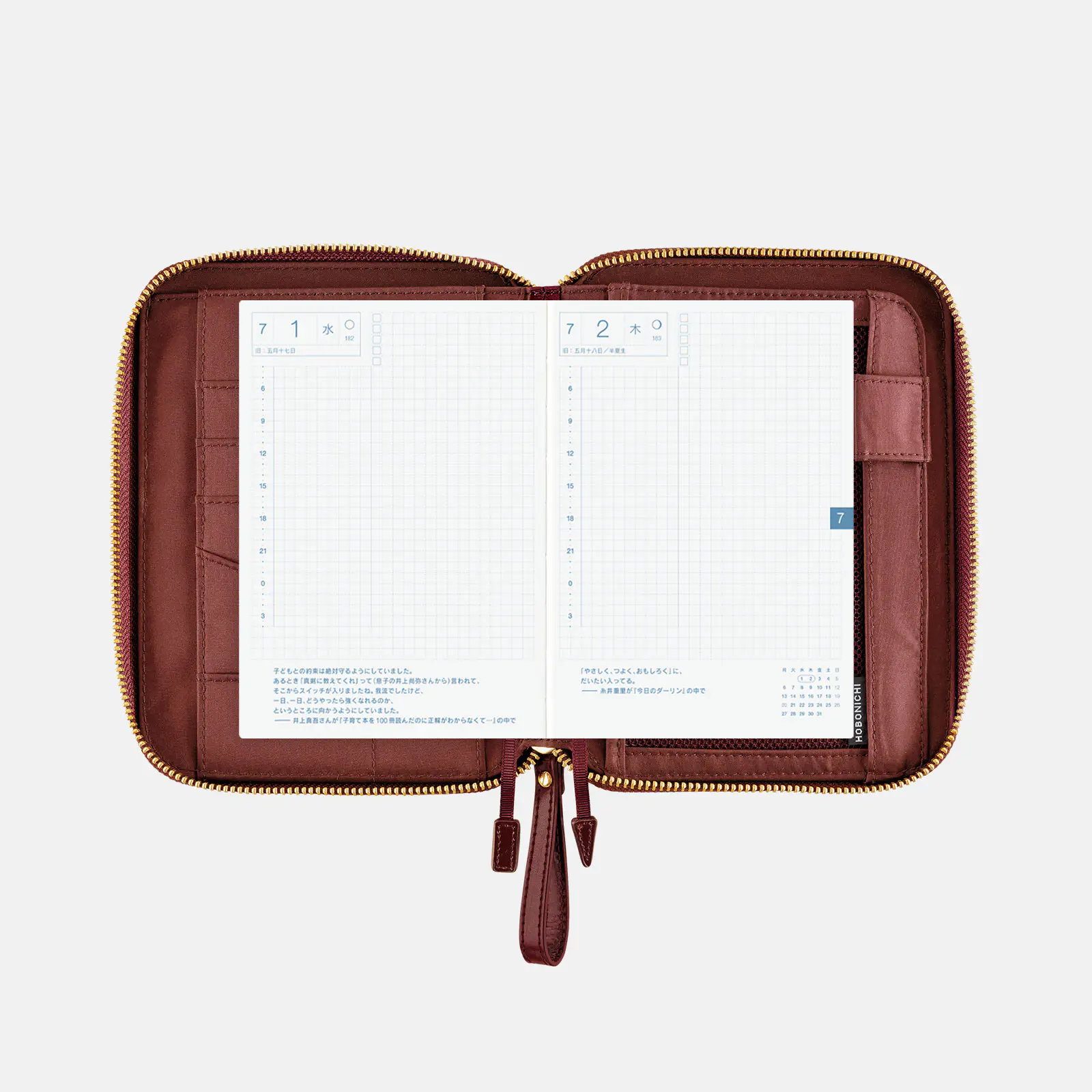 | 1日ページ | 前期 : 2026年1月1日〜6月30日(全187ページ) 後期 : 2026年7月1日〜12月31日(全190ページ) *各月のはじめに、「ことしの歳時記」と、その月のことをまとめて書ける扉ページ(1ページ)があります。 *すべてのページに「日々の言葉」を掲載。 *右ページに「ミニカレンダー」を掲載(月曜はじまり)。 *このほか、1日ページのはじめに、自由に使える「Turning the page to a new year」(前期:2ページ、後期:3ページ)があります。 |