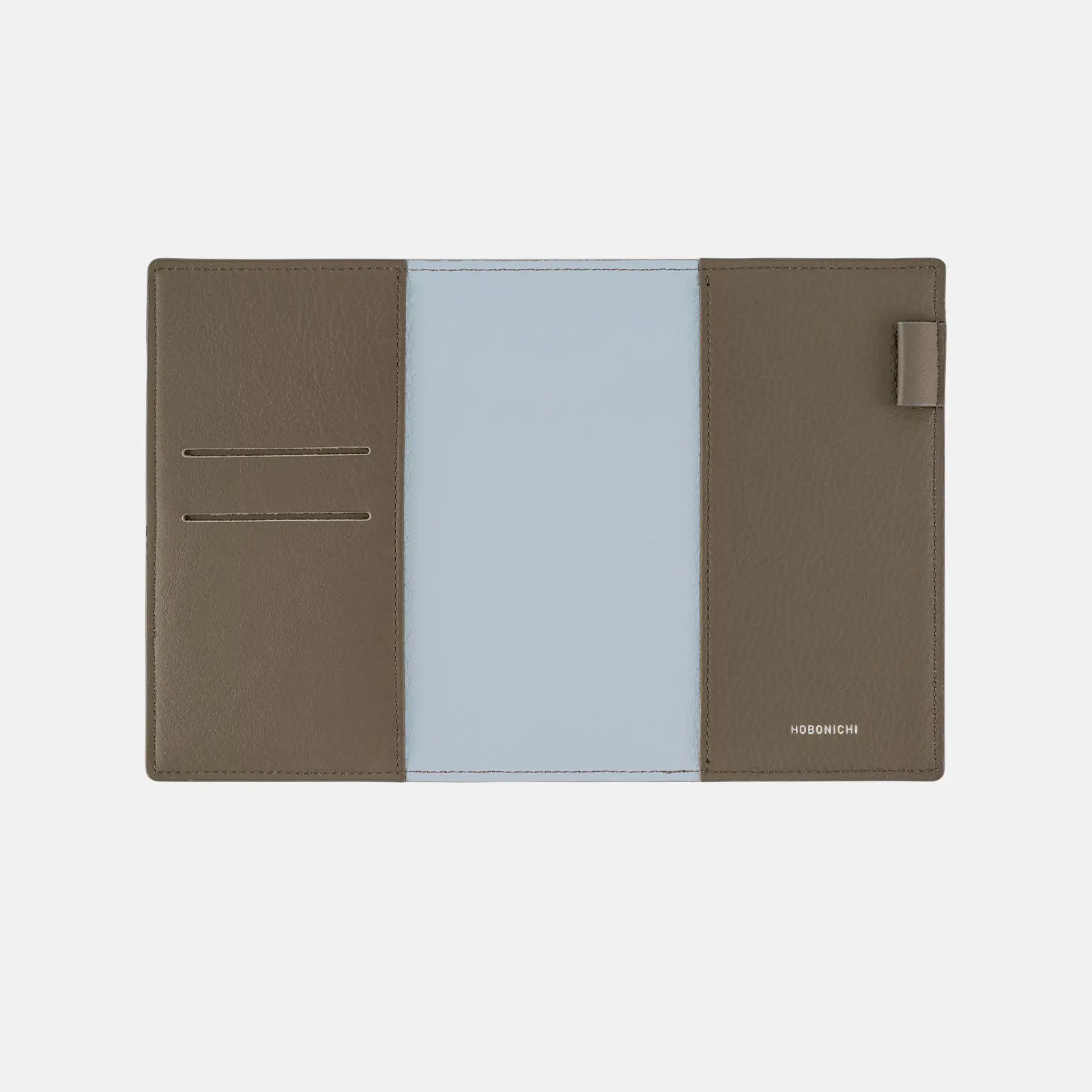 手帳本体にぴったりとフィットするスマートな革カバー。