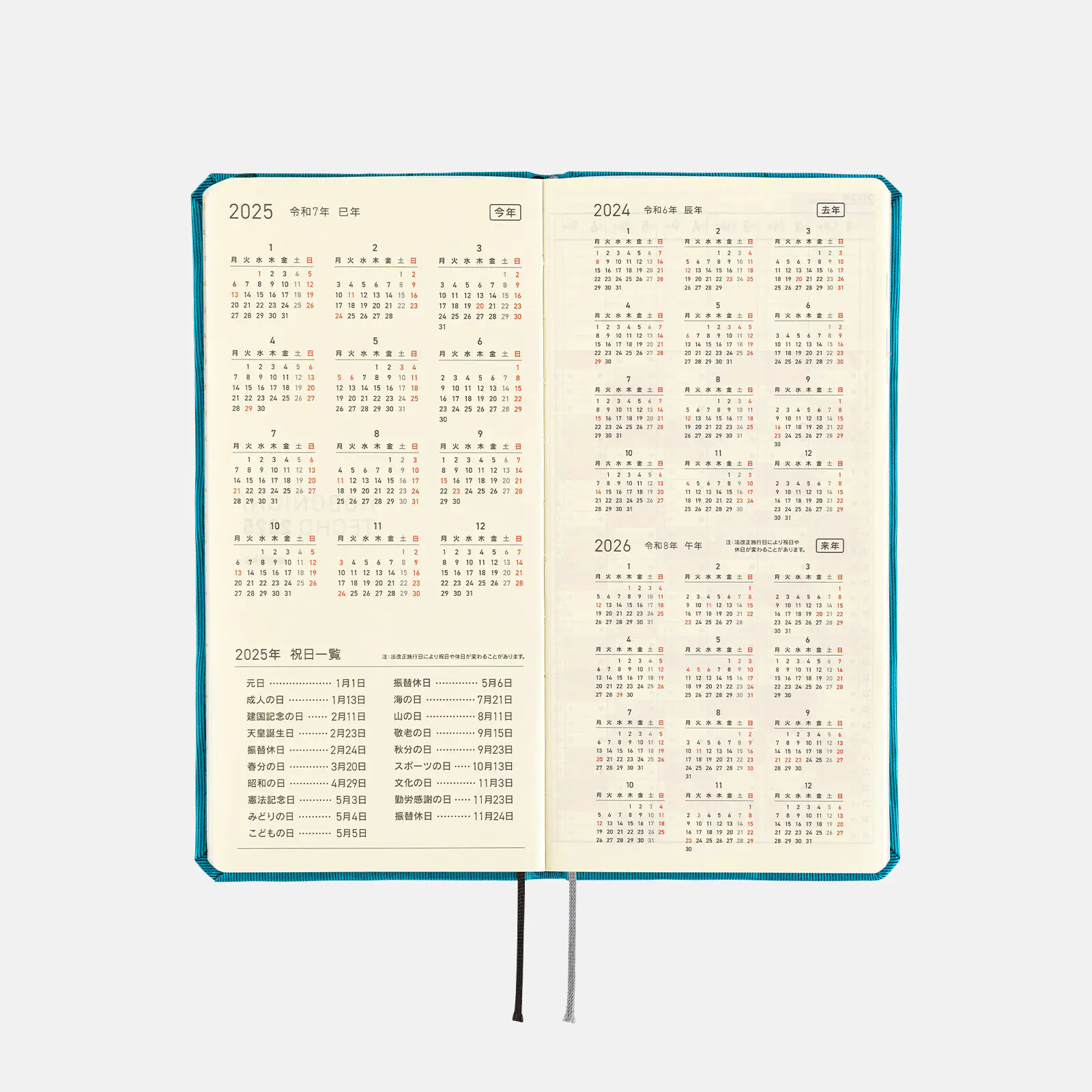| 年間カレンダー | 2024年、2025年、2026年 |