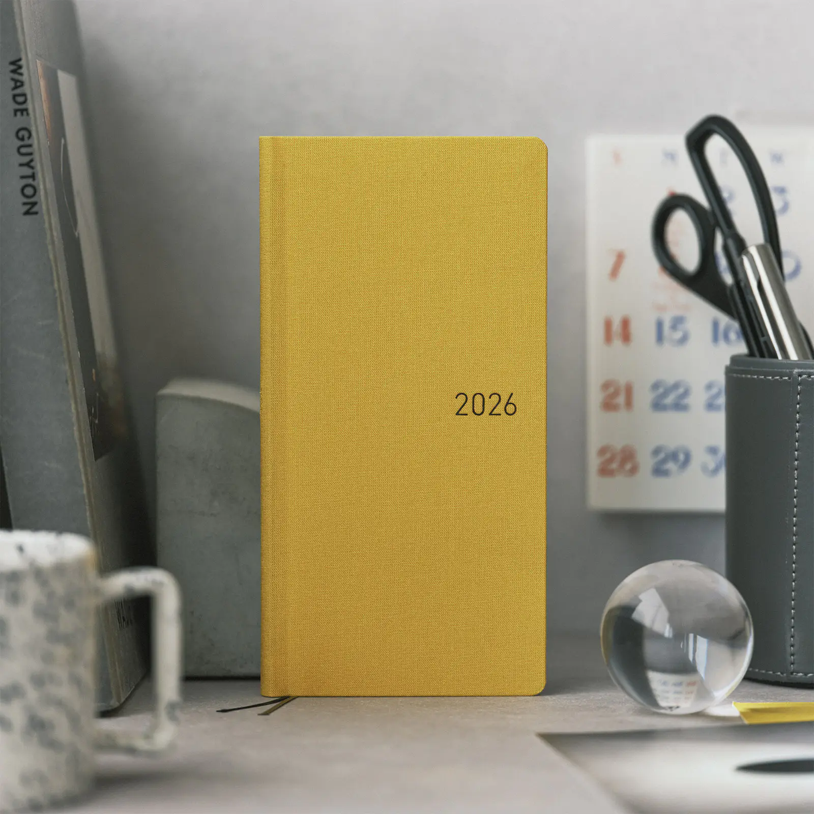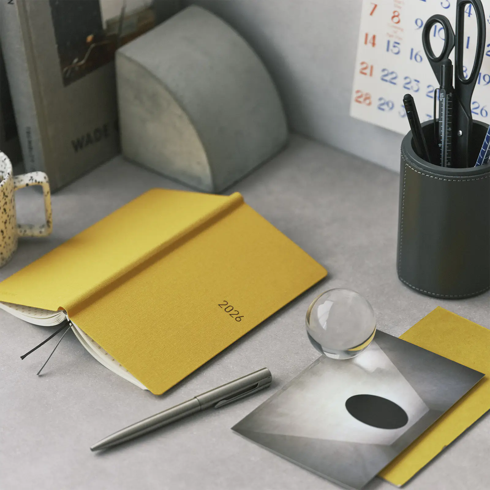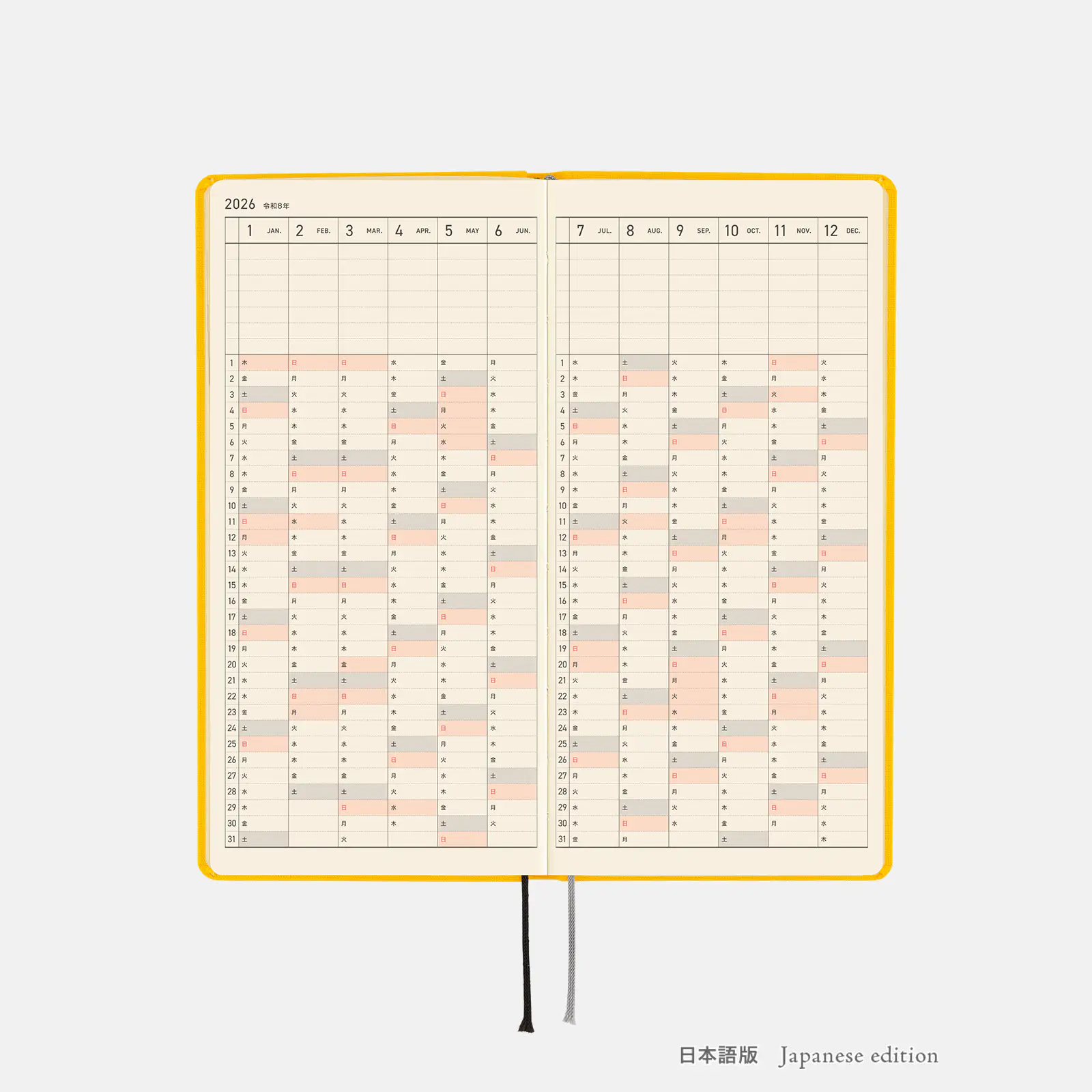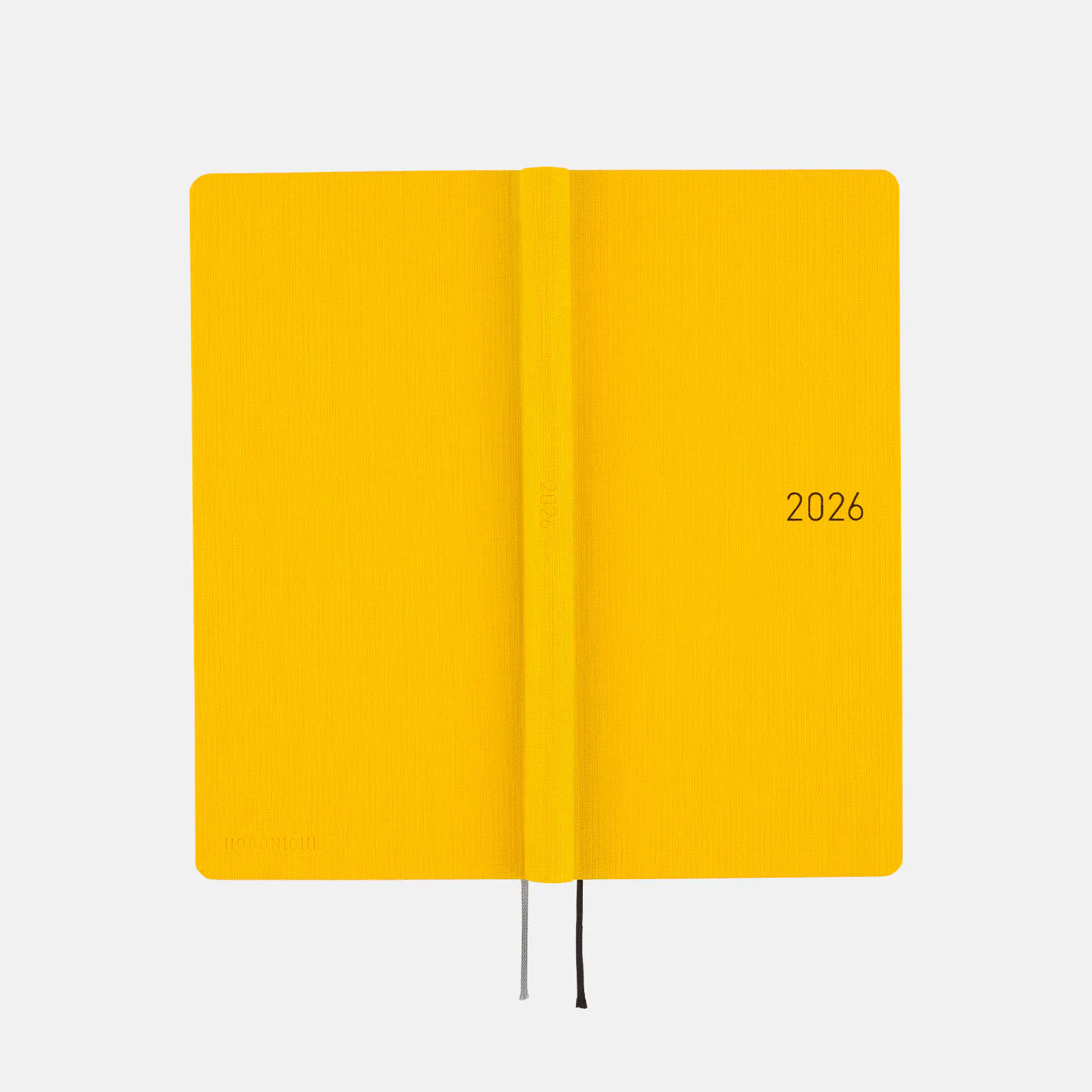 表紙に入った「2026」の文字はブラウンの箔押しで、