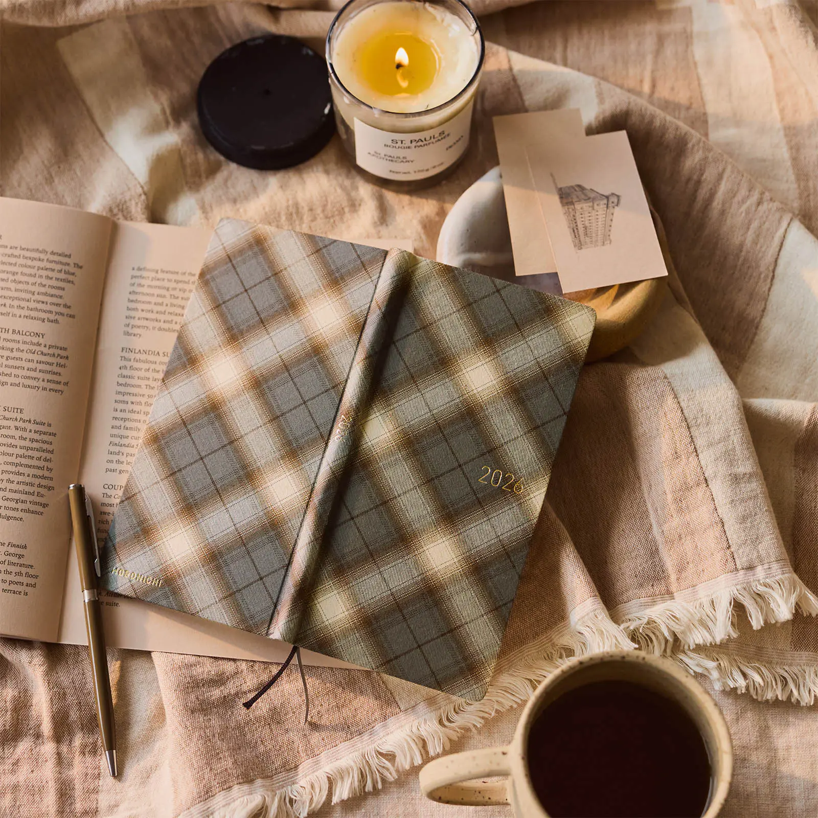 グレーとブラウンを基調とした大人びた印象のチェック柄。