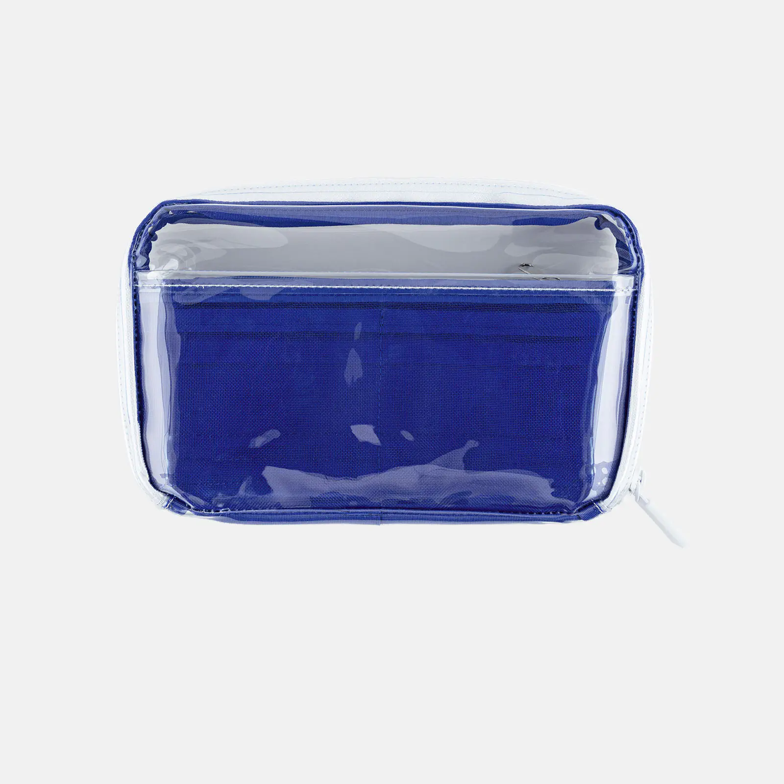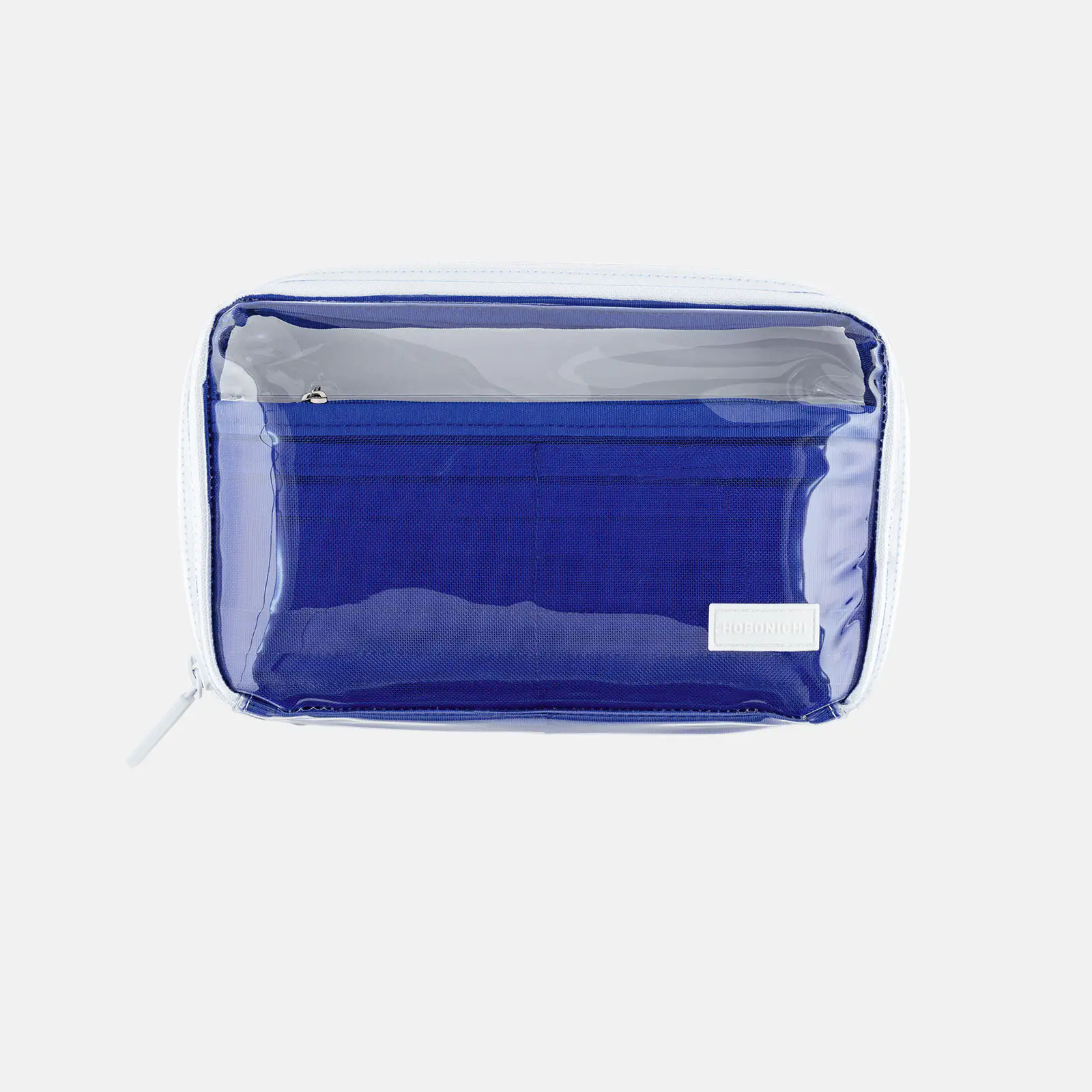 ビビッドな青とファスナー部分の白を組み合わせ、