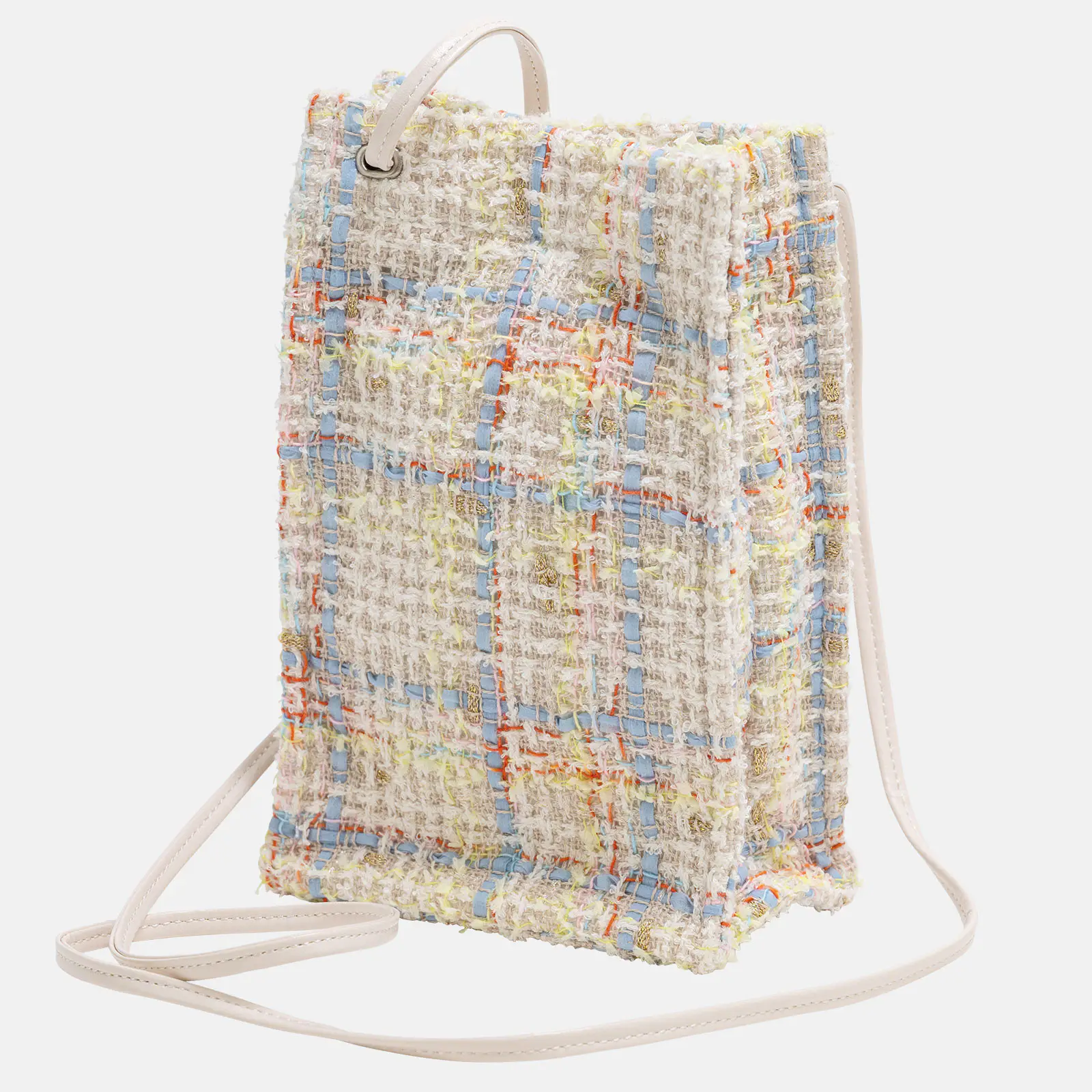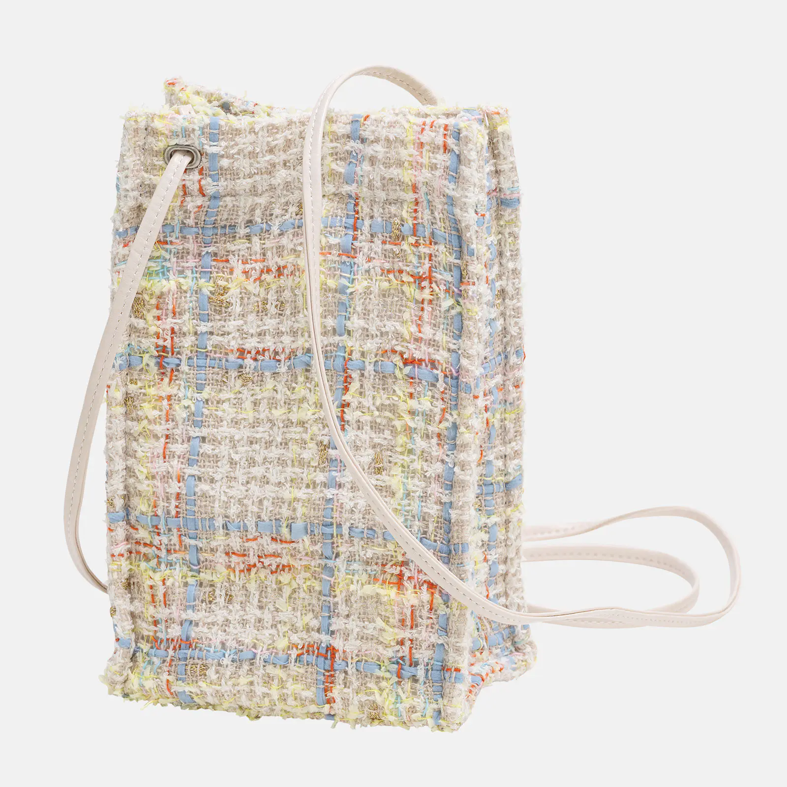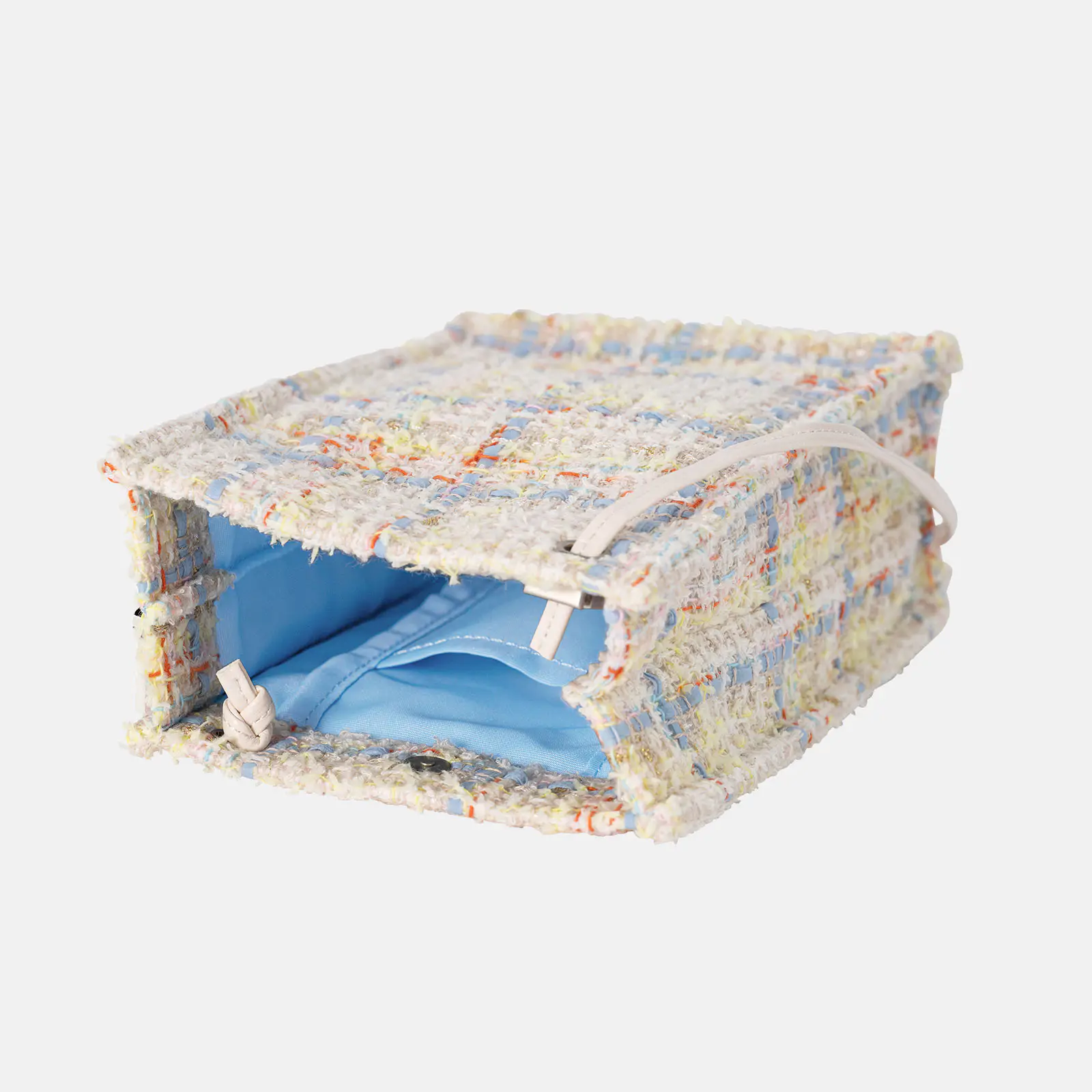 ホワイトの地をベースに、ライトブルー、イエロー、