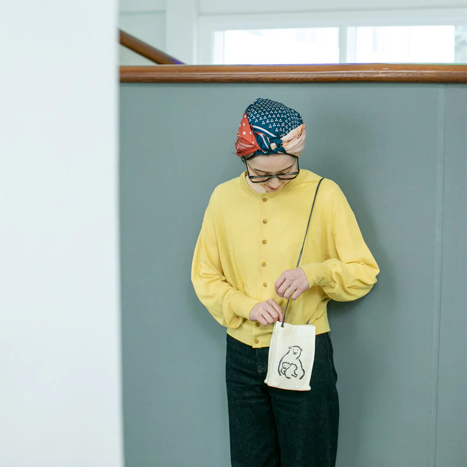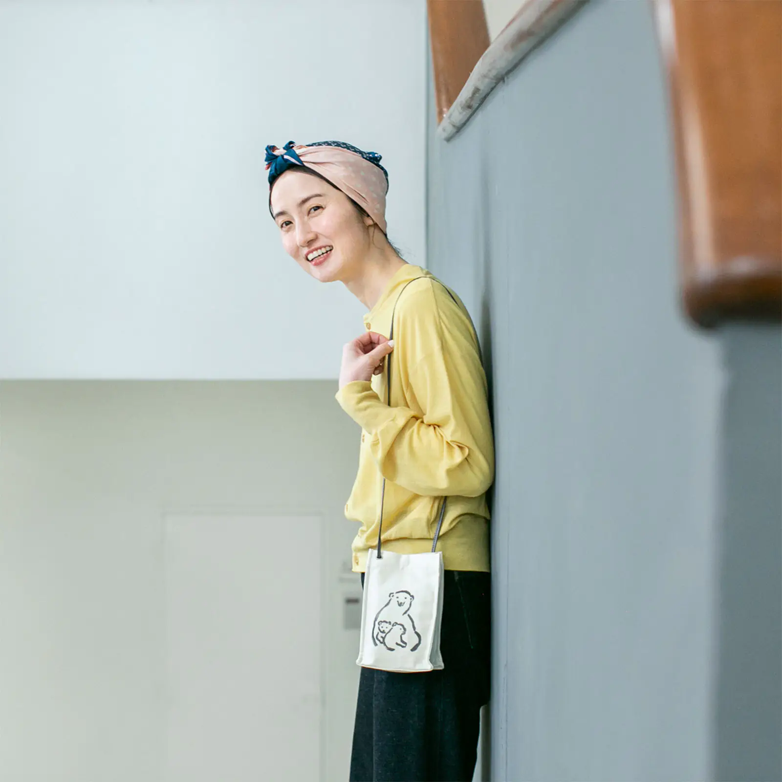 ちょっと近所へ出かけるときのミニショルダーとして。買い物などで帰りに荷物が増えそうなら、小さくたたんだエコバッグを入れておくと◎。