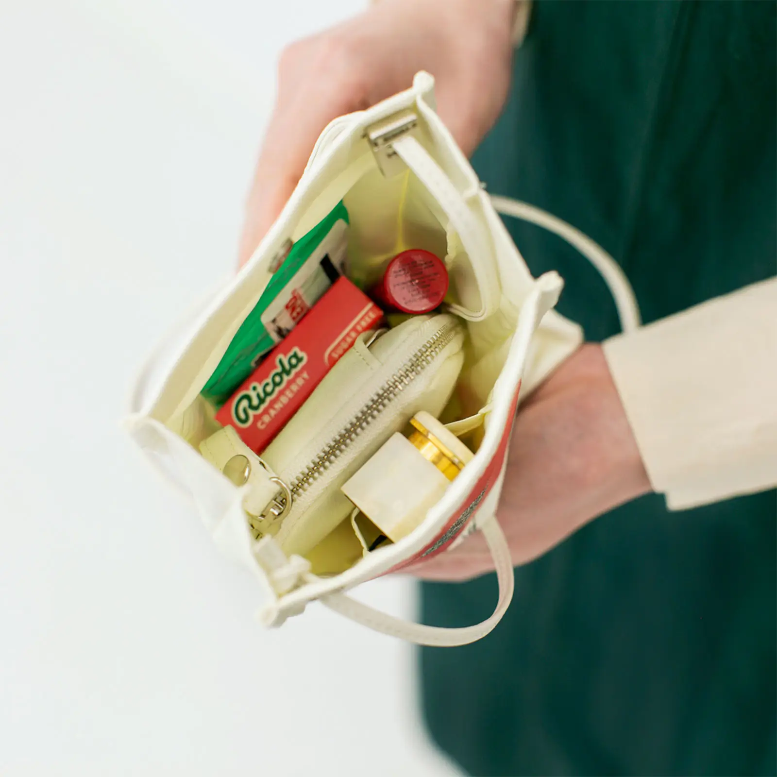 ちょっと近所へ出かけるときのミニショルダーとして。買い物などで帰りに荷物が増えそうなら、小さくたたんだエコバッグを入れておくと◎。