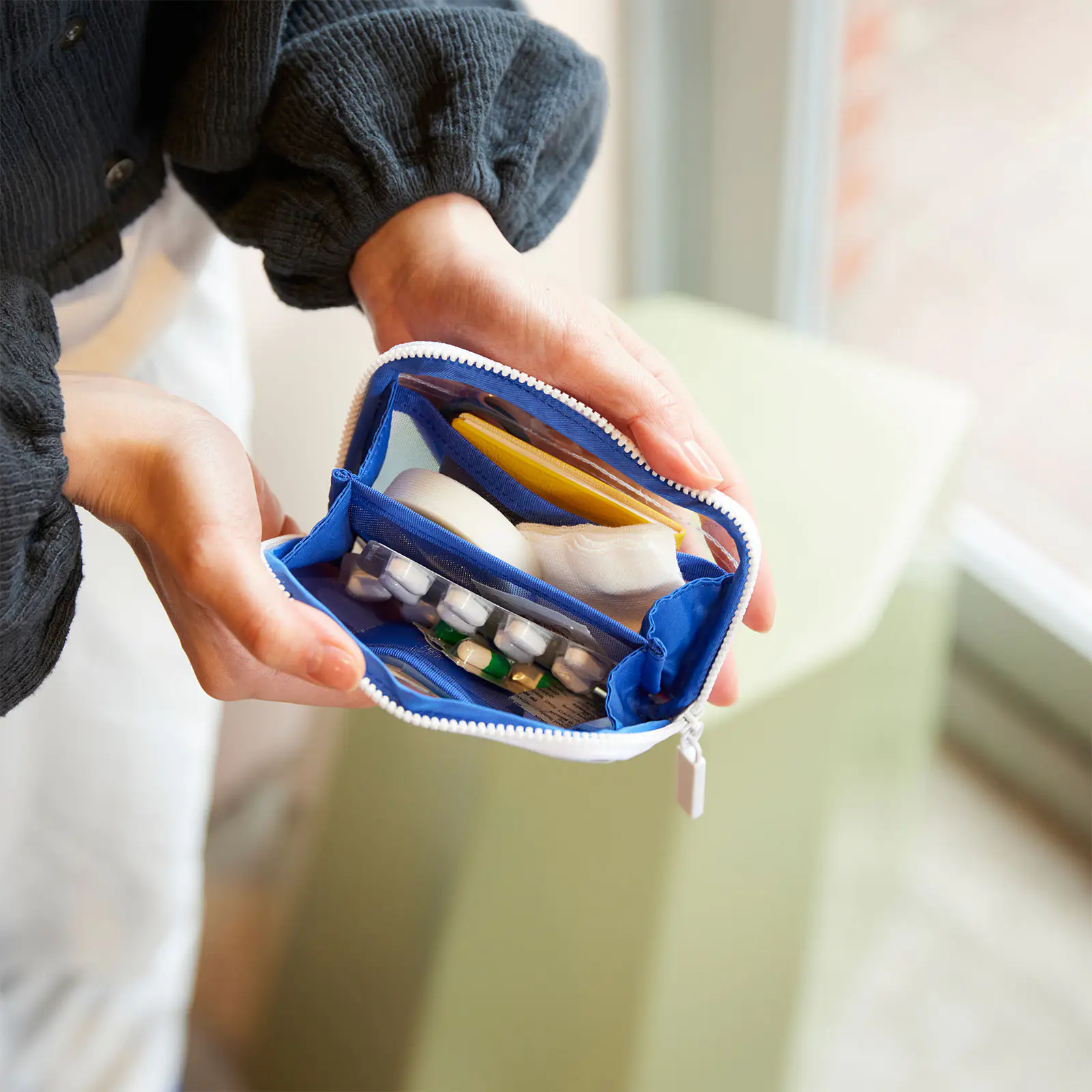 カードにお金、カギや薬類といった、必要最低限のものだけを持ち歩くポーチとして。出張中のホテル内でも、このポーチひとつがあれば安心です。
