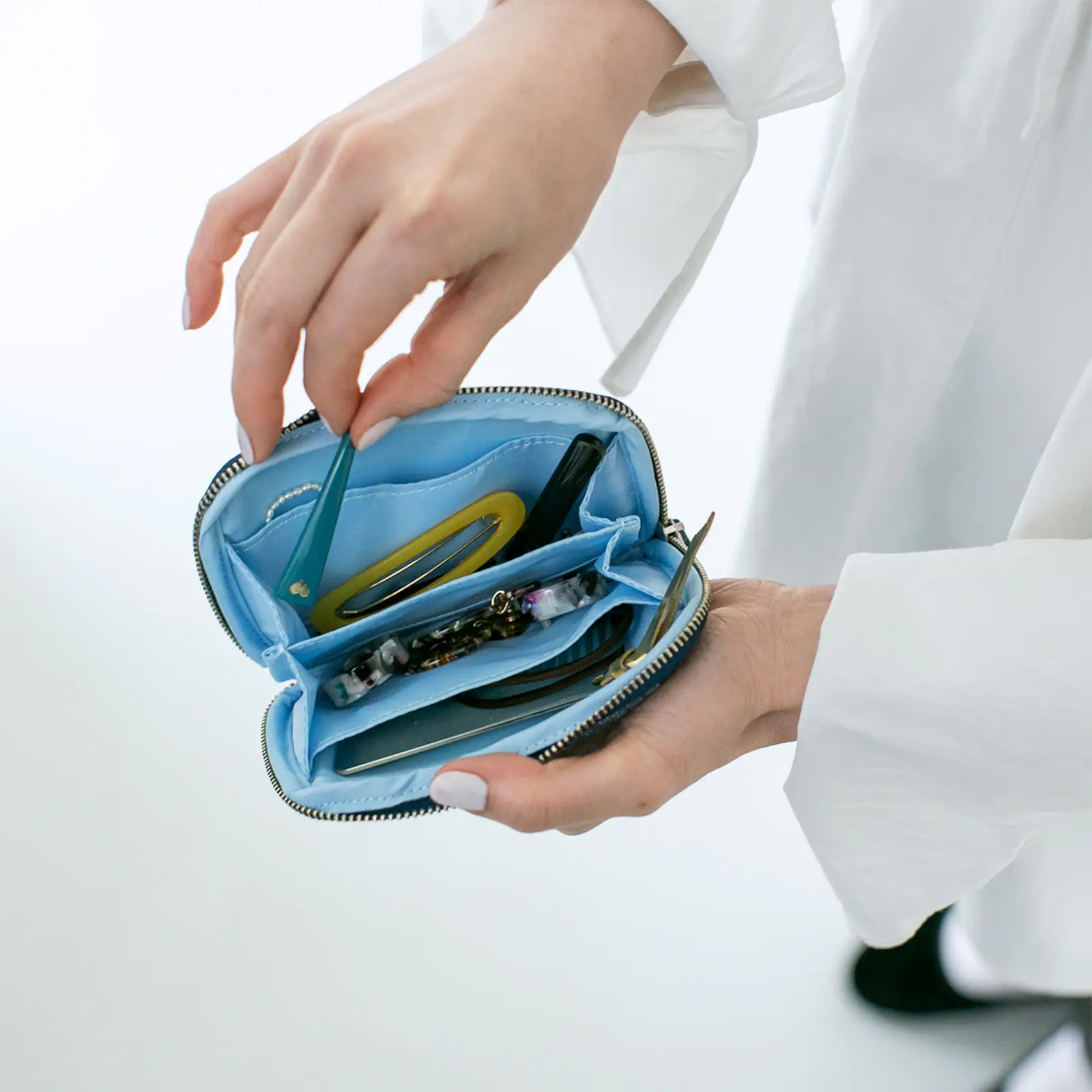 カードにお金、カギや薬類といった、必要最低限のものだけを持ち歩くポーチとして。出張中のホテル内でも、このポーチひとつがあれば安心です。