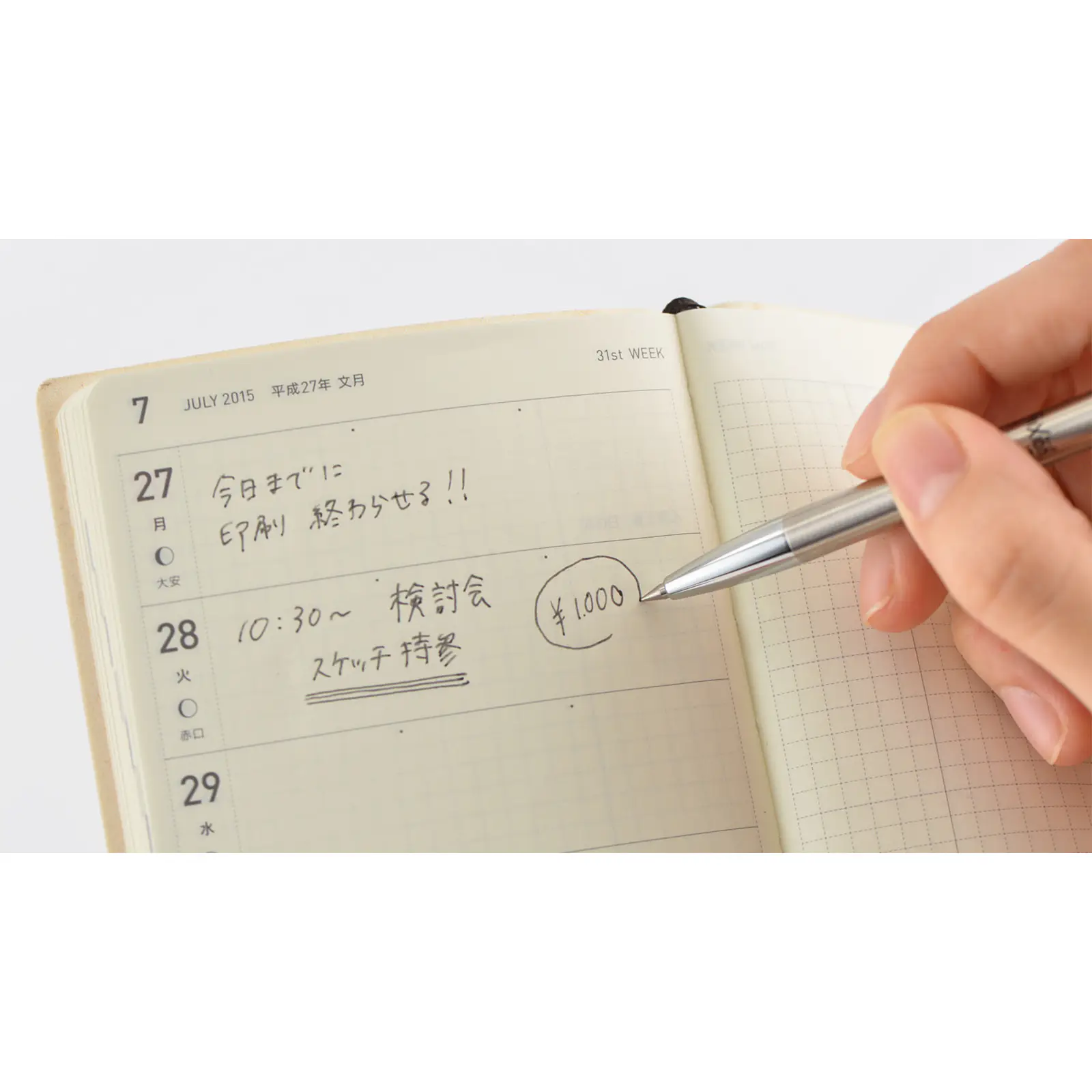 手帳に書き込んだ予定やメモを