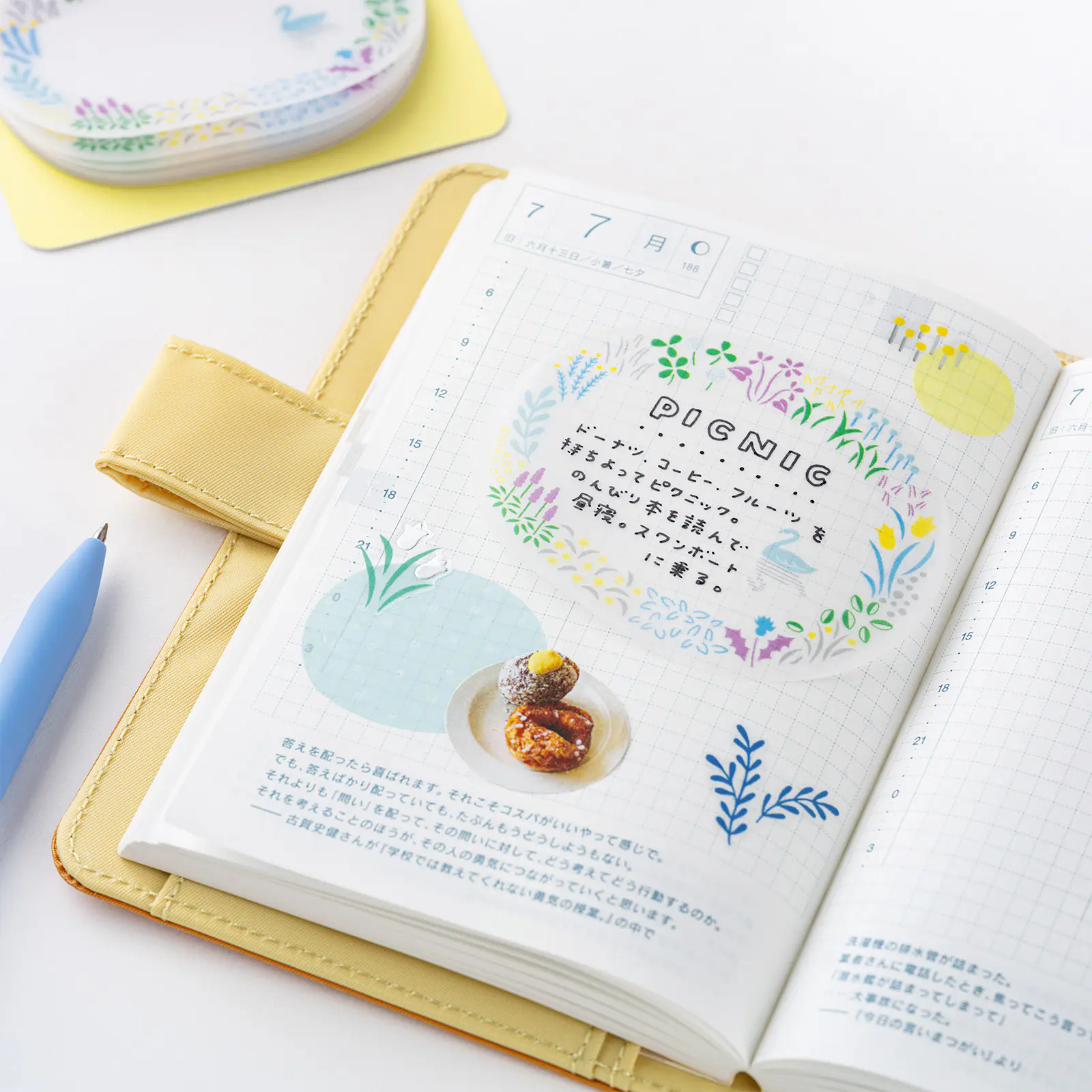 手帳に貼ったときに、ページのうえに
