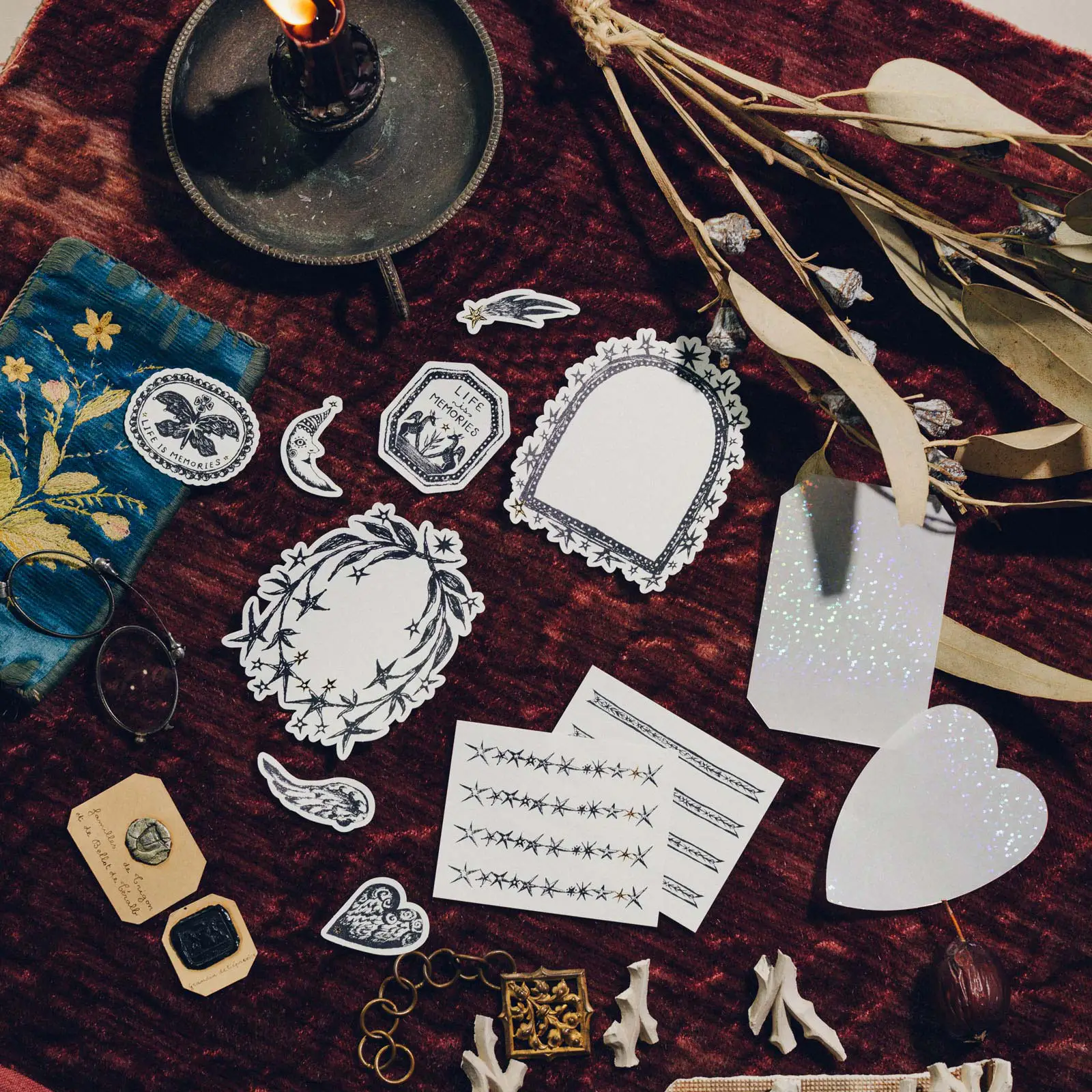 | セット内容 | 26枚入り フレームシール(2種×各2枚) ラインシール(2種×各4枚) モチーフシール(6種×各2枚) キラキラホログラムシール(2型×各1枚) |