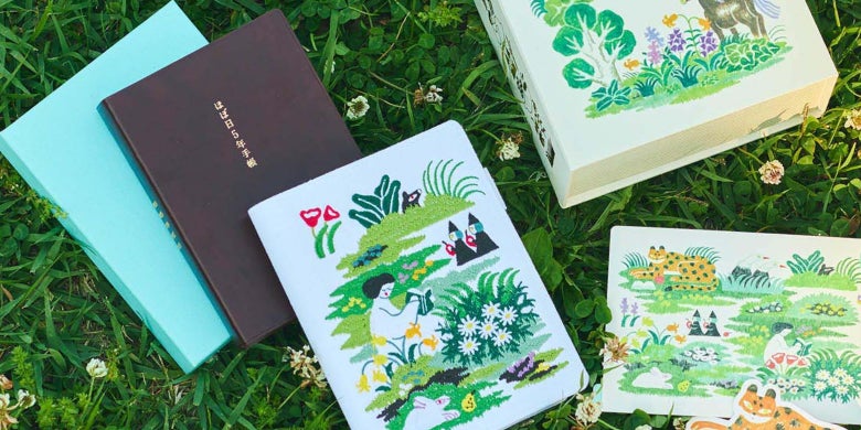 刺繍作家でイラストレーターの奥見伊代さんデザインによる専用の刺繍カバー・下敷き・ブランドカードが、特別にデザインされた専用のボックスに入っています。