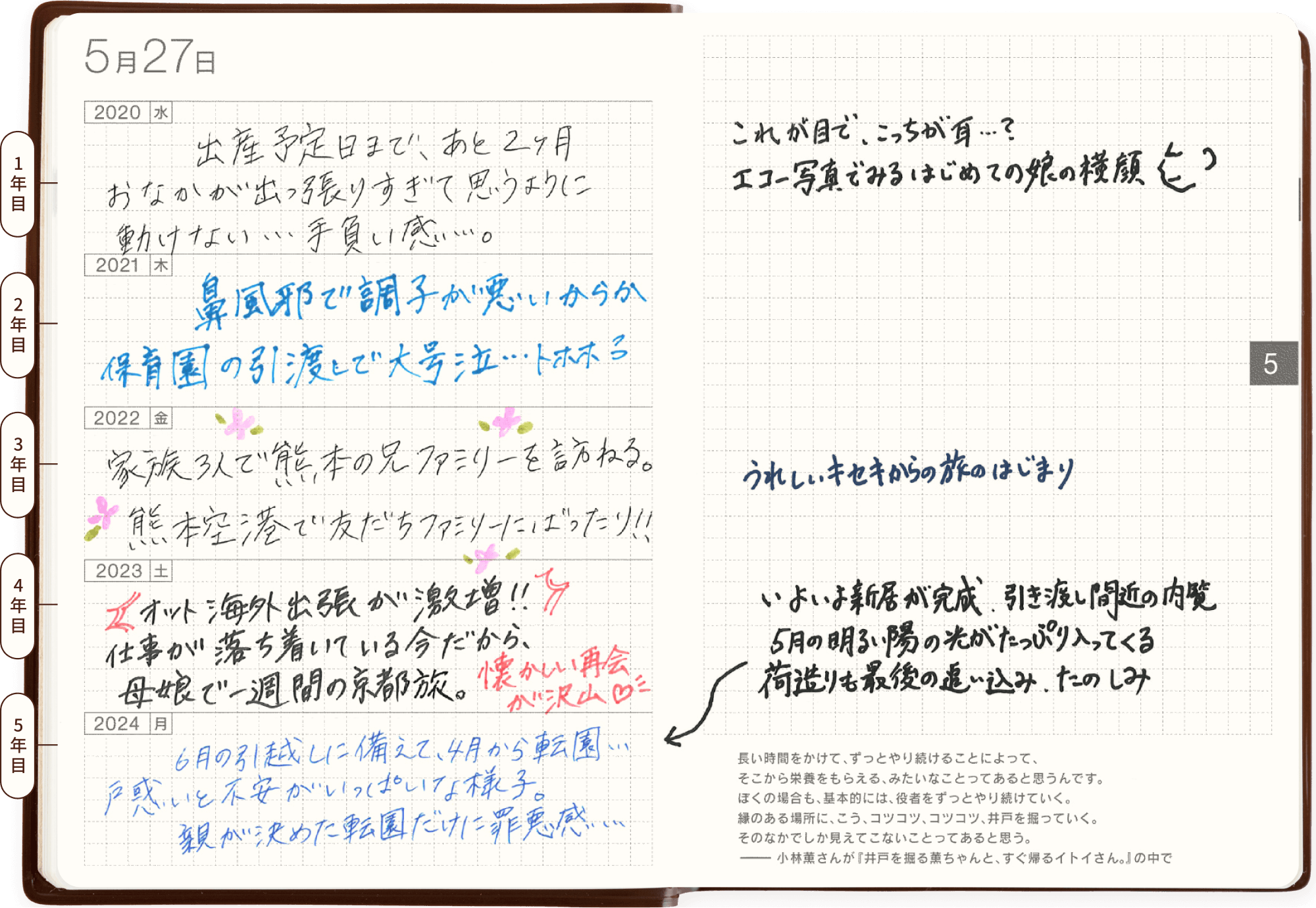 就職・結婚・出産・起業・入学.....人生の節目にこそ「ほぼ日5年手帳」を