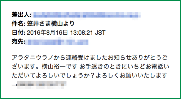 この、いわば記号っぽい文面は、ガラケーにちがいない。