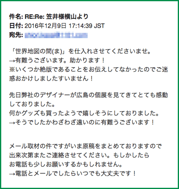 ▲だいたいこんな感じの返信なので、毎回、自分の書いたメールが戻ってきたのかとビビりました。