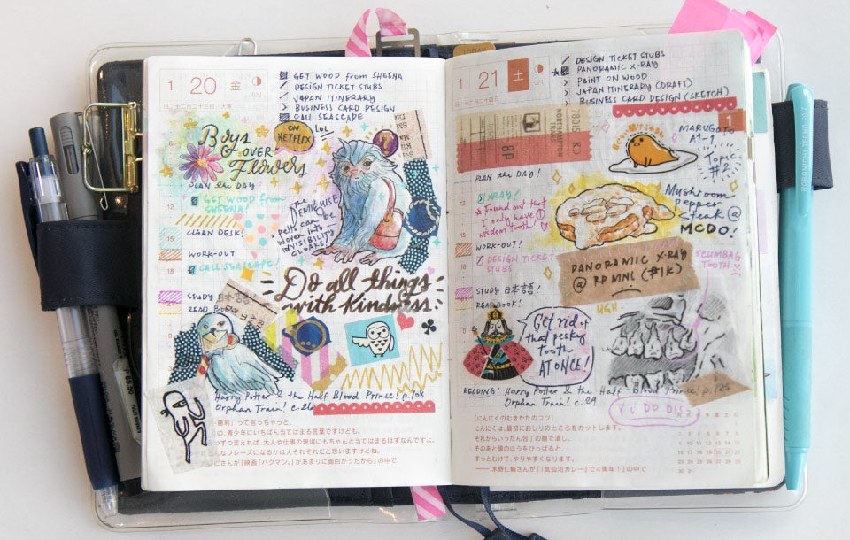 ほぼ日手帳を使い始めたのは、今年から。いろんなことを書き込んで便利に使っています。夜に、次の日にやらなければいけないタスクを書き出したりすることが多いかな。昨年は月に1~2回ぐらいしか絵を描かなかったんだけど、いまは、ほぼ日手帳が大好きだから毎日描いています。日本語の勉強をしているので、その勉強時間をメモしたりも。仕事のタスクも、手帳に書くことでよりこなせるようになりました。